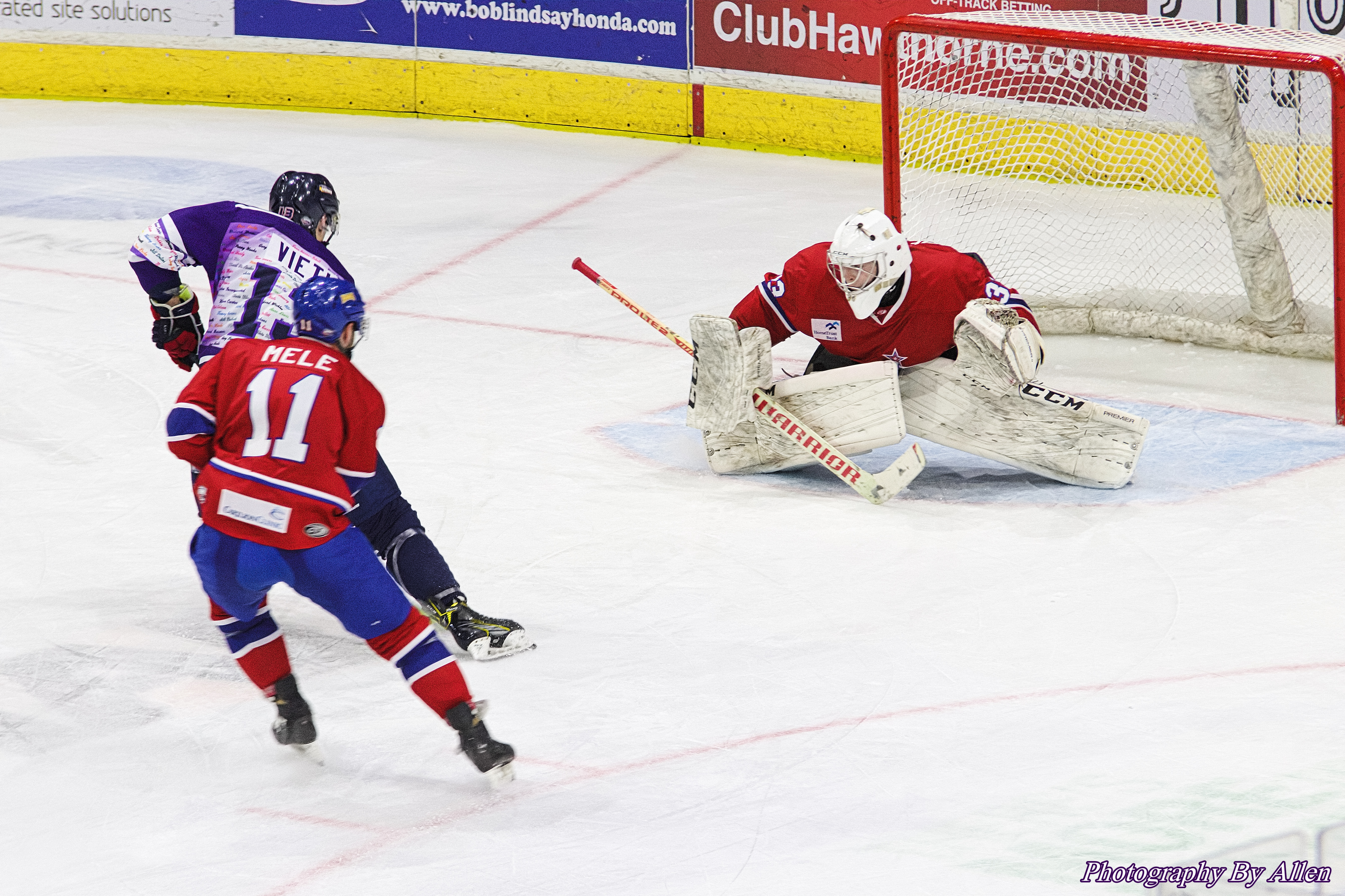 Naud ended the game 3:43 into the overtime frame, skating a full lap of the Roanoke net and faking a pass before lifting a shot from the right circle past Caffrey for the game-winner. Phaneuf earned the win for Peoria, stopping 14 of 17 shots faced through regulation and overtime. The victory improves Phaneuf’s record to 12-1-1 on the season and gave him his second straight victory.