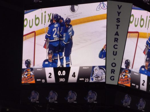 However, the Swamp Rabbits refused to go away quietly, and seized on an opportuntiyt following an Icemen turnover in the their own end. Carter Souch stole a pass in the high slot and snapped a shot over the shoulder of Icemen netminder Olof Lindbom to cut the Icemen lead to one.