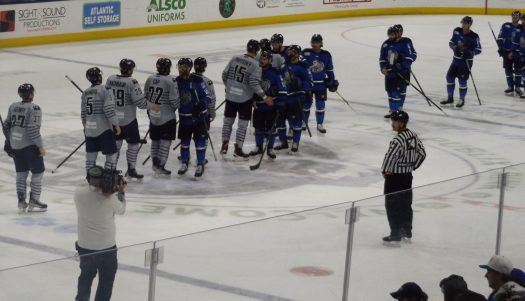 Nearly five minutes later the Icemen received a power play following a double-minor penalty to Greenville for high-sticking. Jacksonville moved the puck around and it off to Craig Martin rushing down the slot. Martin snapped a shot that beat Bednard to give the Icemen a 3-2 lead with exactly five minutes remaining.