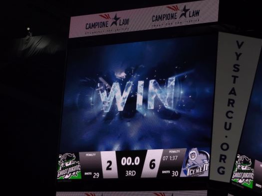 The Icemen would go on to win 6-1 over the Ghost Pirates.