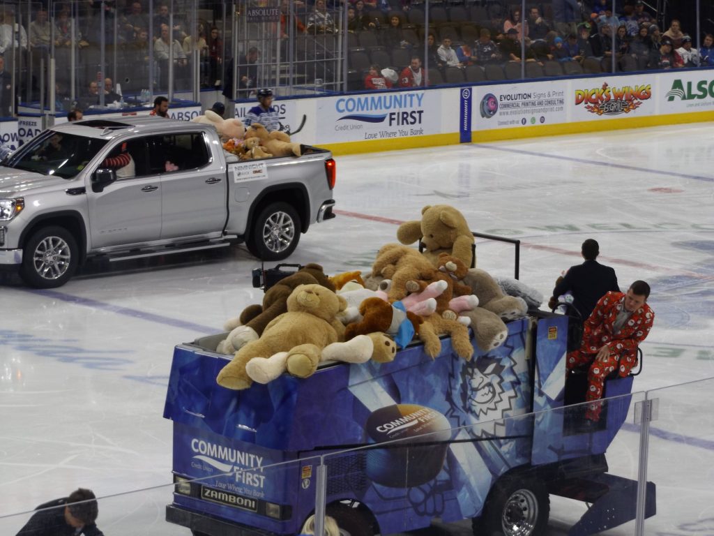 It took just 1:06 for the Icemen to grab the game’s first goal and ignite the furry celebration on Teddy Bear Toss Night. After outpacing a pair of Stingrays defenders, Mike Hedden collected the puck and skated down the slot. Hedden carved a backhand shot high into the net for the tally. The goal sparked over a 11,000 teddy bears to rain down onto the ice surface.