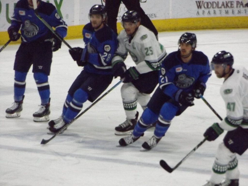 The second frame was almost an exact replay of the first. At the 4:52 mark, Hebig slid a pass to rookie Zach Berzolla who marched down the slot, avoided two defenders and whipped the puck into the back of the cage for his first professional score. At the time, it gave the Everblades their second lead of the night at 2-1. A little under nine minutes later, Jacksonville struck back again when Abbott Girduckis stole the puck in the Florida defensive zone. He set up Wacey Rabbit who fired wide but Girduckis tracked the puck down and sent it to the front of the net where Mike Szmatula chipped it in for his 18th of the year and a 2-2 tie.