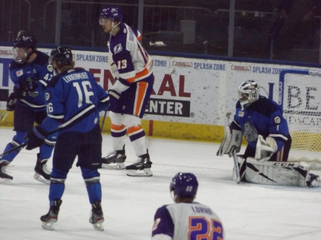 A little past the midpoint of the period, Orlando’s Tristin Langan took a pass from Michael Joly and beat Williams for his 28th goal of the year and his fourth straight game with a tying score in the third stanza.