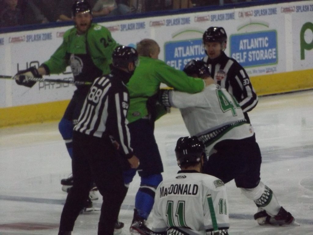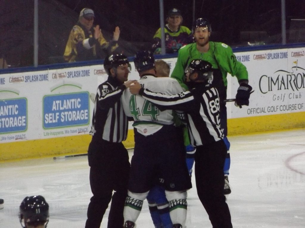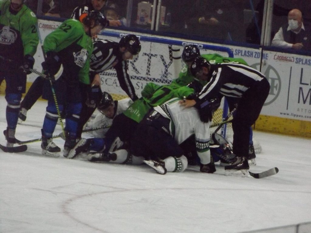 On that same play Florida took another penalty which resulted in another 5-on-3 powerplay for the Icemen. During this sequence, Florida forward John McCarron was given a 10-minute misconduct and ejected from the game.