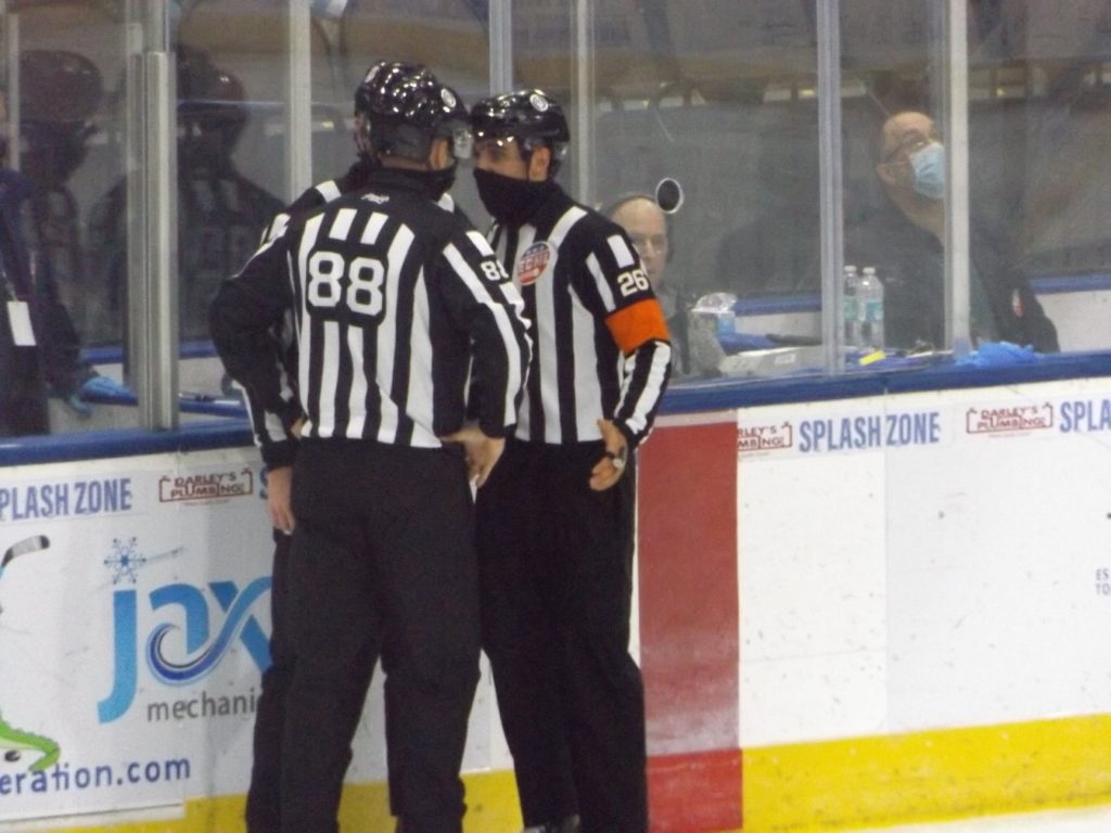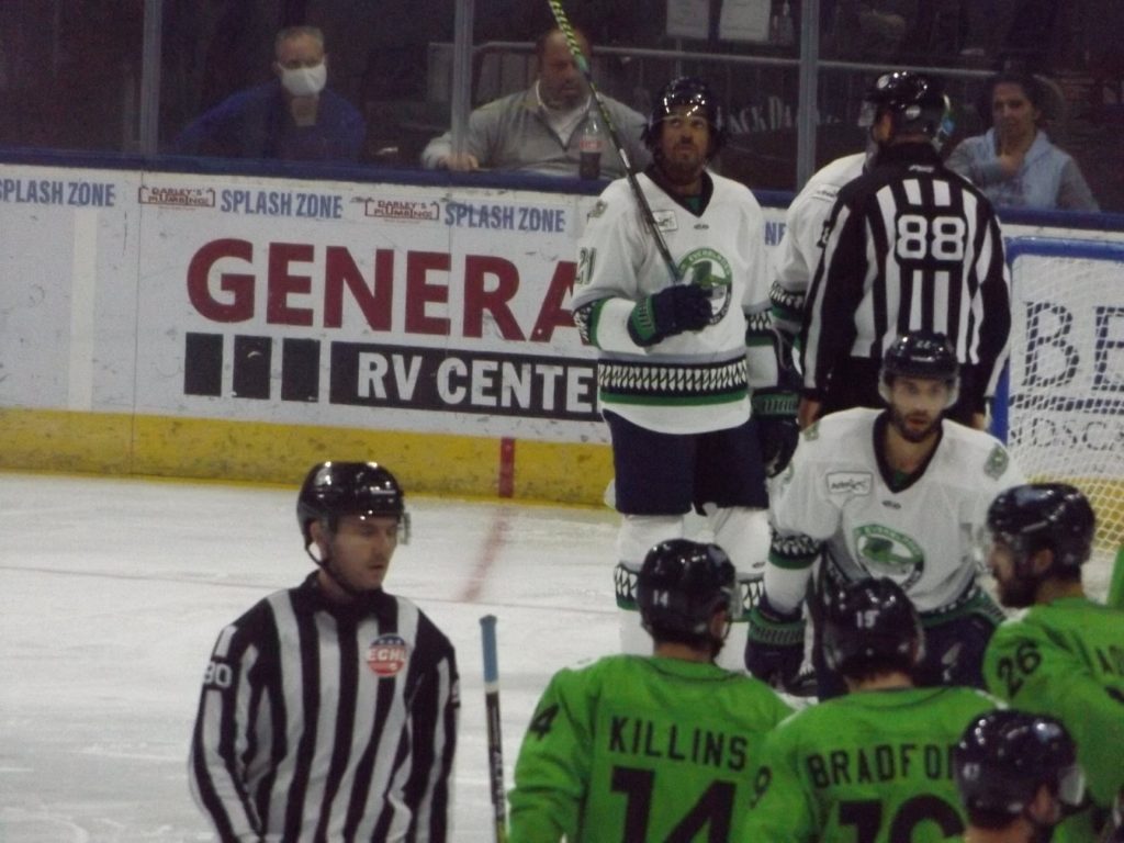 Shortly after, Florida’s Tommy Marchin received a two-minute penalty for interference which gave Jacksonville another powerplay opportunity. However, the Everblades appeared to score a shorthanded tally, but it was waved off due to a high stick. Florida head coach Brad Ralph voiced his displeasure on the waived off goal and twice threw a water bottle toward the referee and was immediatley ejected from the game.