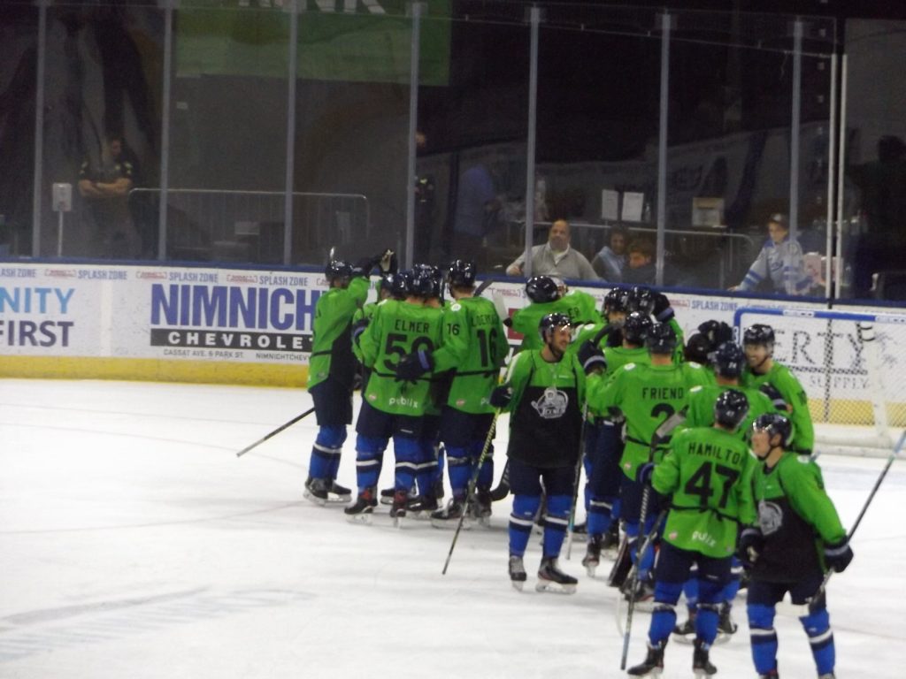 The Icemen got off to a hot start in period two with Erik Bradford giving the Icemen a one goal lead by cleaning up a lose rebound and deking around Florida goaltender Jake Hildebrand.