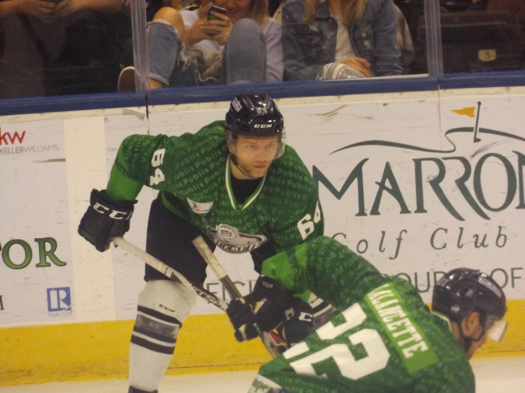 The Icemen reclaimed the lead just 41 seconds later when Christophe Lalancette gathered the puck low in the slot. Fighting off a check from a defender, Lalancette delivered a wrist shot that beat the blocker of Bitzer for the go-ahead goal to give Jacksonville a 3-2 lead heading into the second intermission.