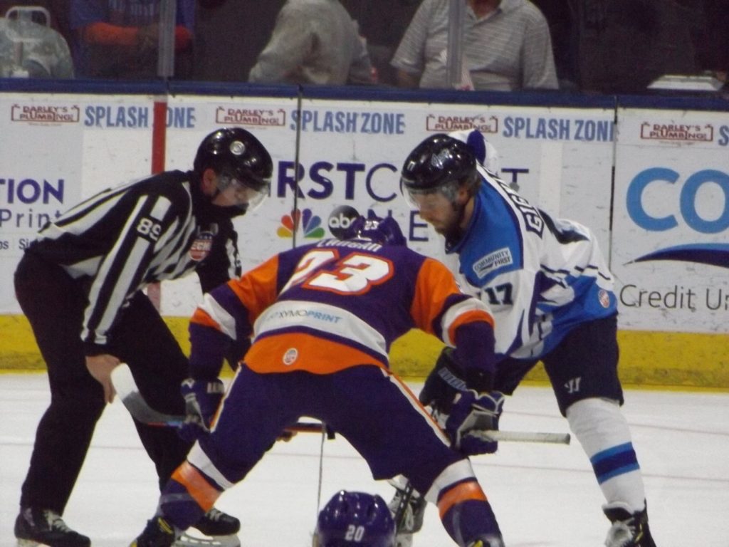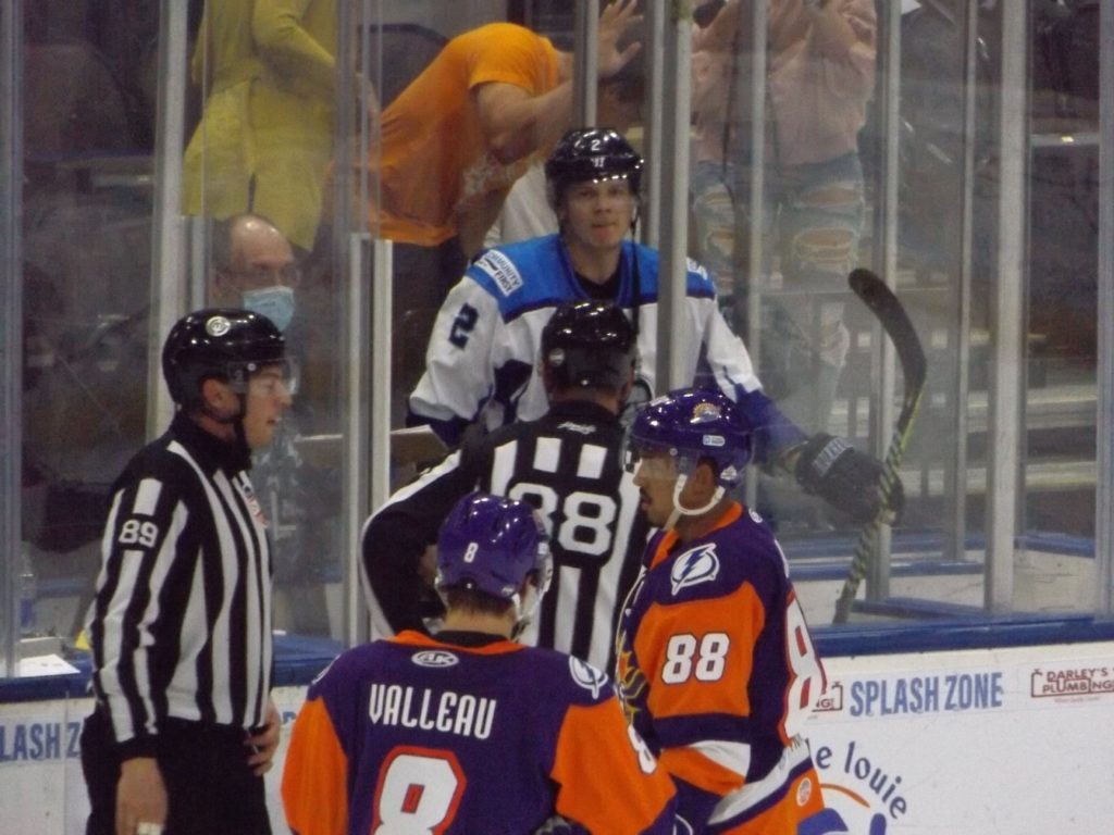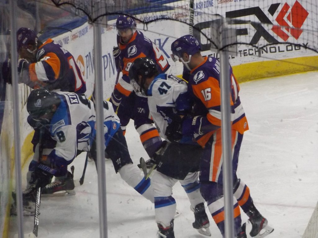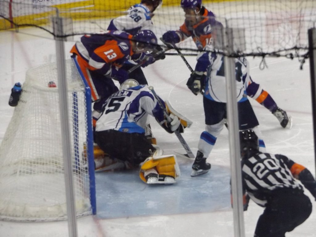 Nearly 30 seconds into the third period, the Icemen had another powerplay as Orlando’s Tristin Langan was called for tripping. On the powerplay, Icemen forward Abbott Girduckis scored off a great cross-crease pass from Bradford to increase the lead to three.