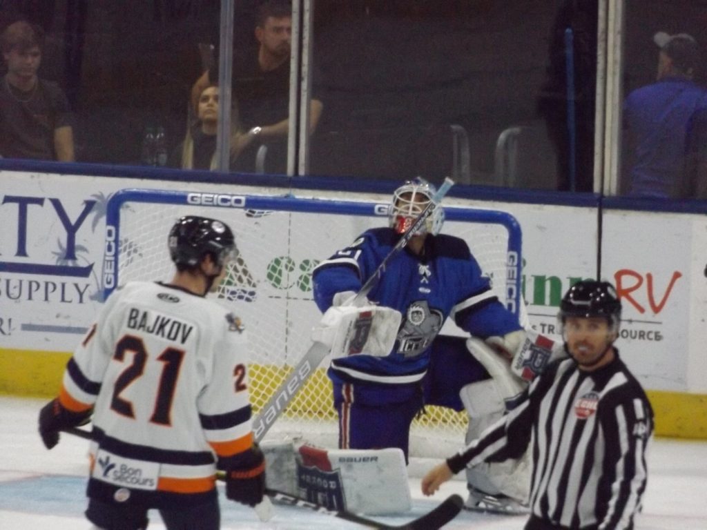 The Icemen doubled their lead midway through the second period when Brendan Warren lit the goal light off of assists from John Albert and Dajon Mingo. That score was quickly answered by the Swamp Rabbits’ Michael Pelech with the lone helper going to Liam Pecararo at 9:40. Jacksonville restored its two goal margin before the end of the frame on a power play goal when Albert set up Everett Clark.