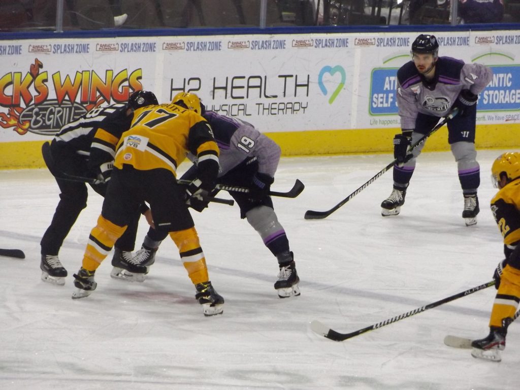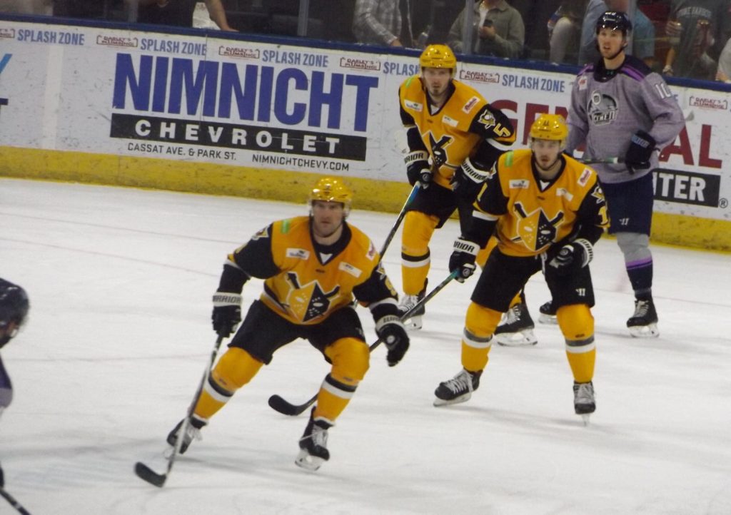 Wheeling again crawled in front at the 4:42 mark as Watling netted his 8th of the year with Adam Smith and Matt Alfaro drawing the helpers on the play. Two minutes and 14 seconds after that, the score was tied for a third time when Saracino and Gignac combined to set up Pascal Aquin for a power play goal and his 16th tally of the season.
