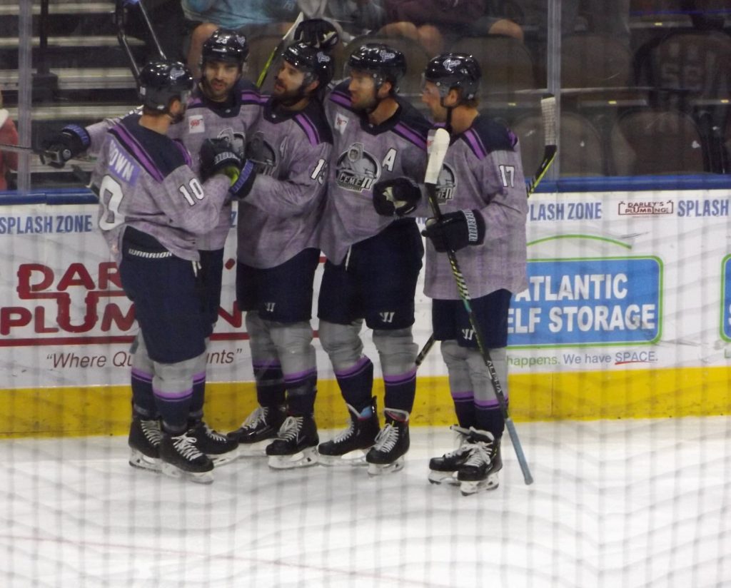 JACKSONVILLE, FLA – On Saturday, May 8th, the Jacksonville Icemen hosted the Wheeling Nailers for their Cancer Awareness Night at the Vystar Veterans Memorial Arena. What started out as a defensive battle ended up as wild, high-scoring affair that was won by the Nailers by a final of 8-5.