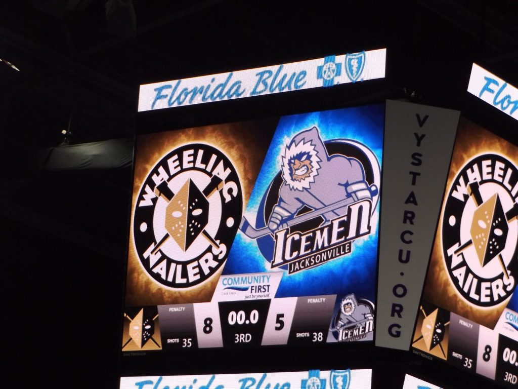 JACKSONVILLE, FLA – On Saturday, May 8th, the Jacksonville Icemen hosted the Wheeling Nailers for their Cancer Awareness Night at the Vystar Veterans Memorial Arena. What started out as a defensive battle ended up as wild, high-scoring affair that was won by the Nailers by a final of 8-5.