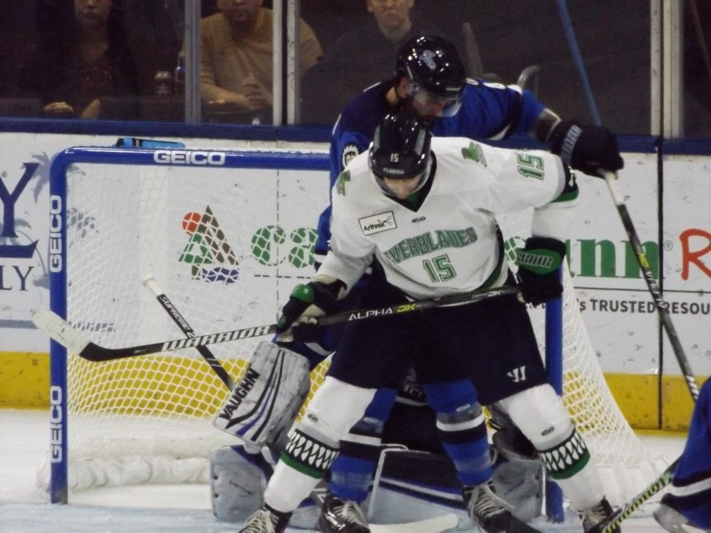 The Everblades quickly countered 90 seconds later as Hunter Garlent picked up a loose puck just below the left wing circle and snapped a point blank shot into the Jacksonville net for the go-ahead goal.