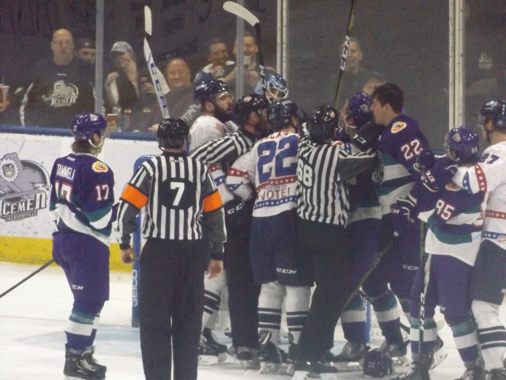 JACKSONVILLE, FLA – On Saturday, February 9th, the Jacksonville Icemen took to the ice at the Veterans Memorial Arena looking to right the ship after two consecutive losses to the Orlando Solar Bears. Despite a comeback that saw them erase a two-goal deficit, the Icemen fell for a third time to their in-state rivals by a final of 3-2 in overtime.