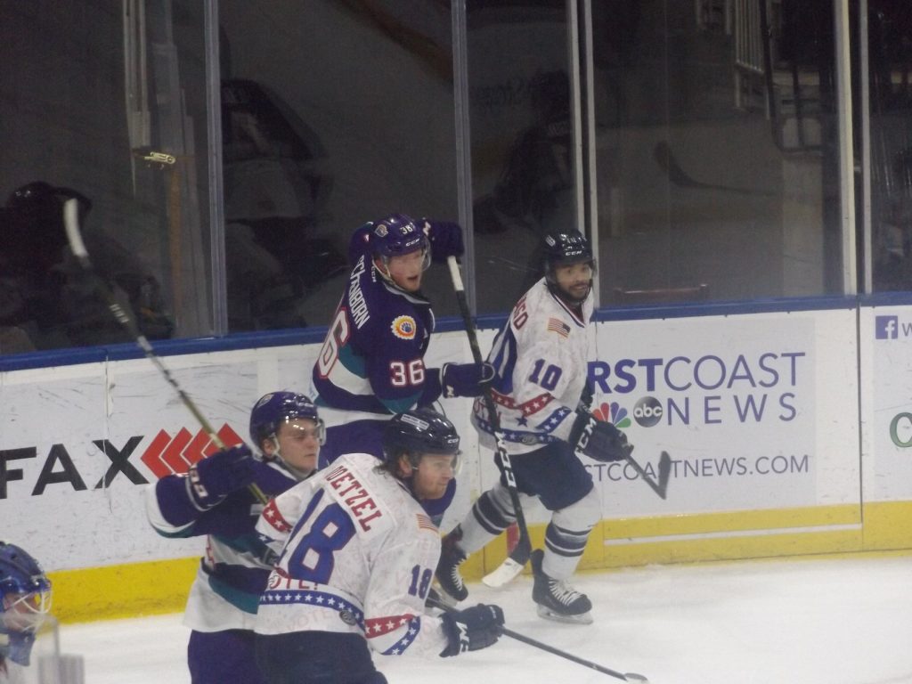 After spotting Orlando a two goal lead, the Icemen began chipping away late in the first period when captain Garet Hunt redirected a shot by defenseman Blake Kessel past Solar Bears goalie Martin Ouellette to trim the margin to 2-1.