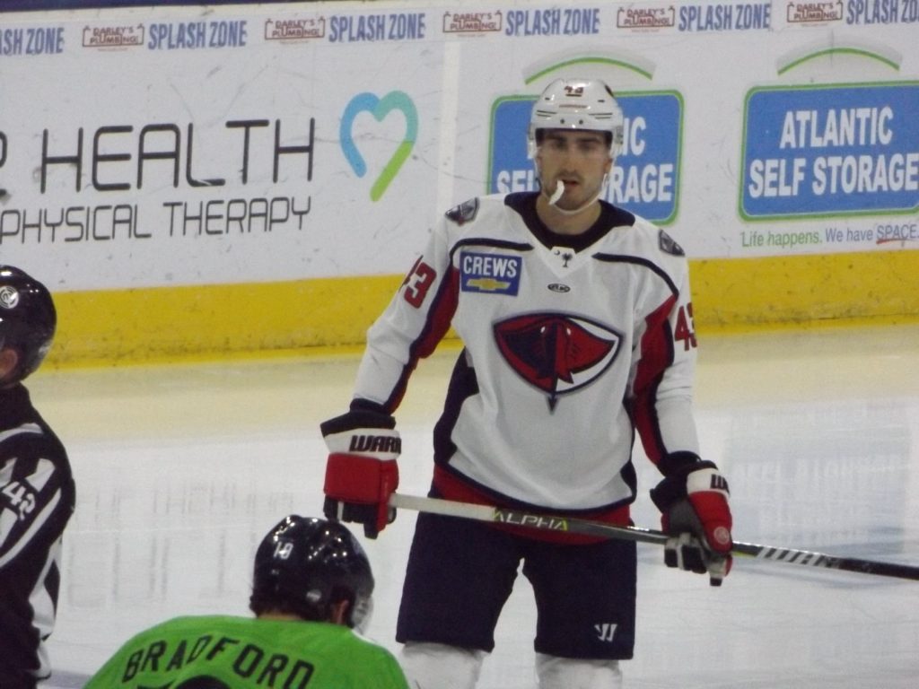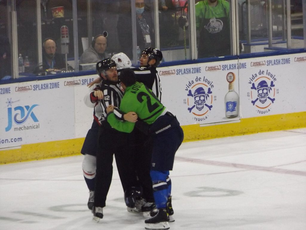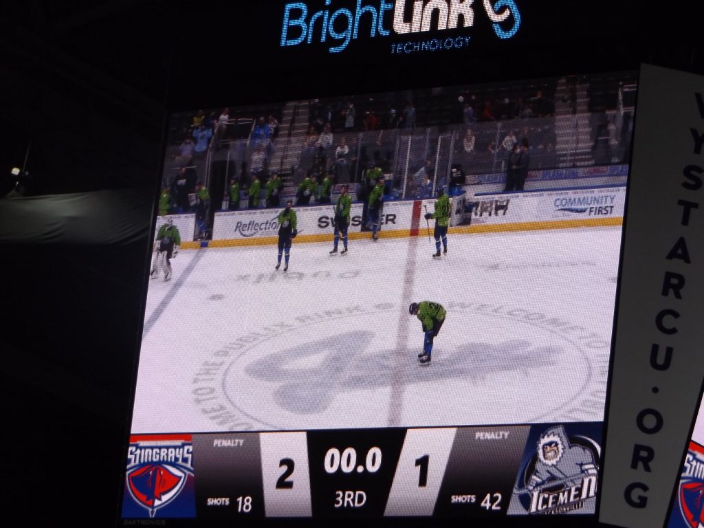 JACKSONVILLE, FLA – On Sunday, April 18th, the Jacksonville Icemen finished off a three games in four days stretch with a battle against the South Carolina Stingrays at the Vystar Veterans Memorial Arena in the River City. On the heels of an overtime win over the Stingrays the night before, the Icemen were looking for a second straight win but Andrew Cherniwchan’s late third period goal tally sent the home team away with a 2-1 loss.
