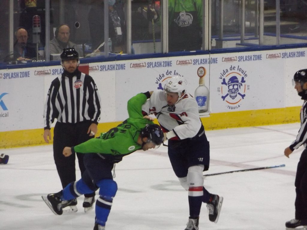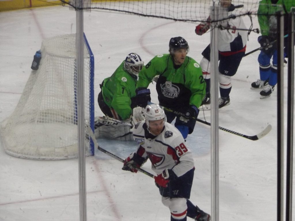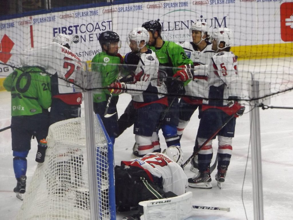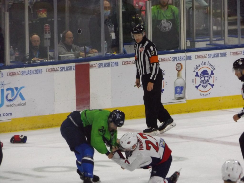 There was plenty of intensity throughout Sunday’s contest after Saturday night’s thrilling Jacksonville victory in North Charleston. Jacksonville controlled the shot board, out shooting South Carolina 10-6 in the first period. There was a fight late in the frame between the Icemen’s Pascal Aquin and the Stingrays’ Tim Harrison that got the fans excited. Only one goal was scored, coming off the stick of South Carolina’s Blake Hillman, who took a feed from Dan DeSalvo and roofed a backhander over Jacksonville goalie Charles Williams to make it 1-0 in favor of the visitors.