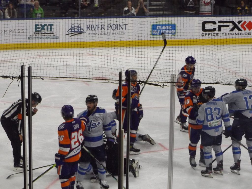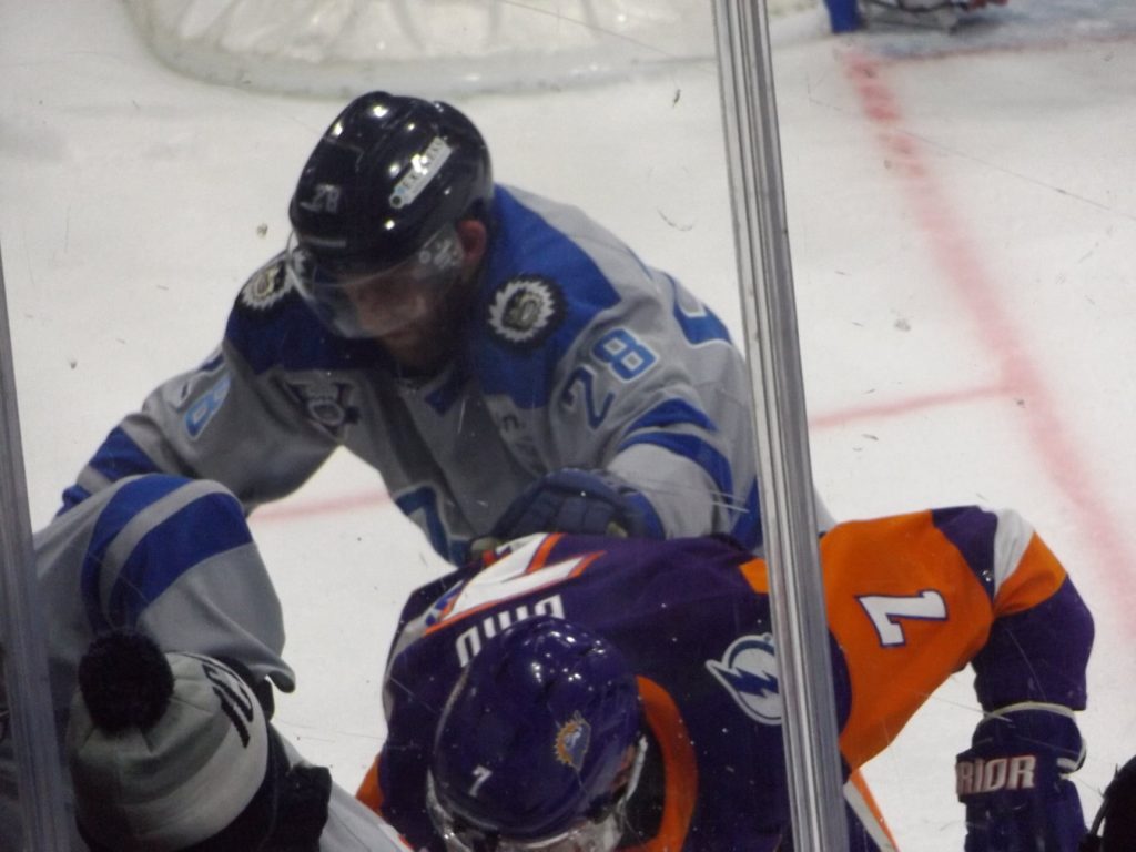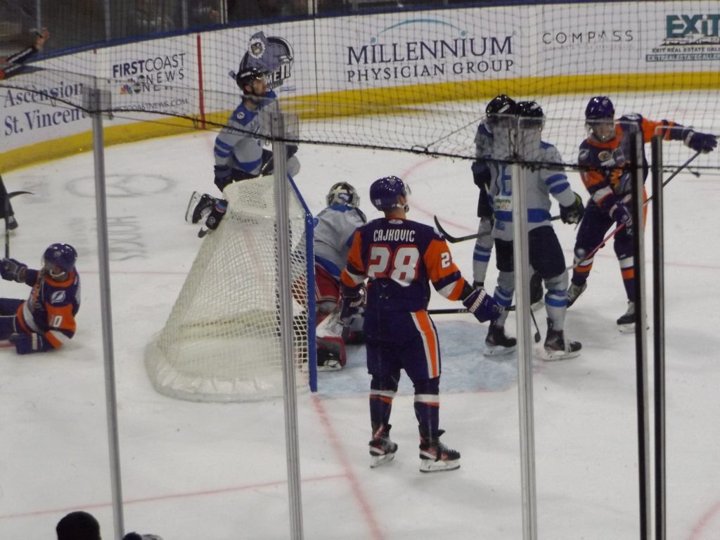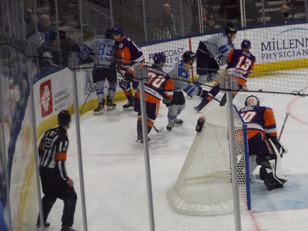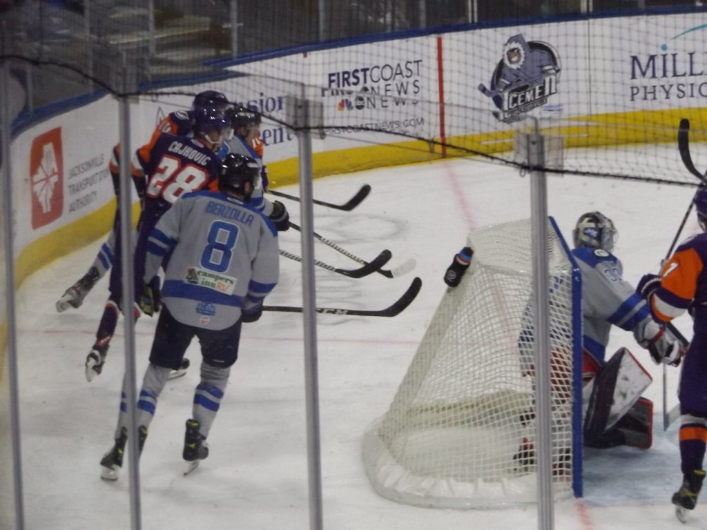 JACKSONVILLE, FLA – On Wednesday, March 2nd, the Jacksonville Icemen hosted the Orlando Solar Bears in a South division rivalry game at the Vystar Veterans Memorial Arena. Both teams entered the contest on losing/winless streaks so coming away with a win and two points was of the utmost concern. The contest turned into a showcase for the goaltenders, Orlando’s Brad Barone and Jacksonville’s Francois Brassard, put on a nearly flawless show. In the end, it was the visiting Solar Bears who came away with a 1-0 victory in front of an an announced crowd of 4,213.