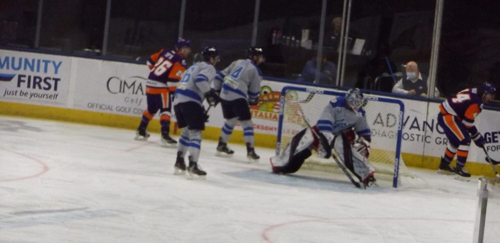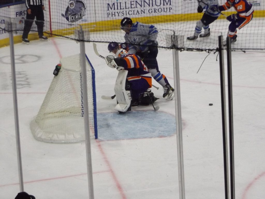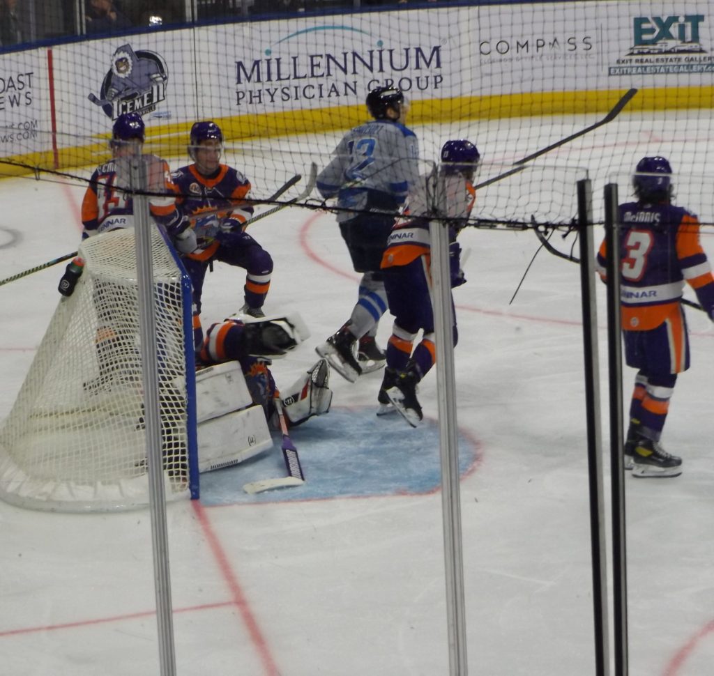The Icemen dominated much of the remaining time looking for a tying score. Even with a late power play and Broussard pulled for an extra attacker, the Icemen were turned away by Barone, who was looking for his third 1-0 shutout win of the season. The game came down to the final seconds when Barone stopped shots by James Sanchez (two) and Jake Elmer a split second before the final horn sounded to seal the win.