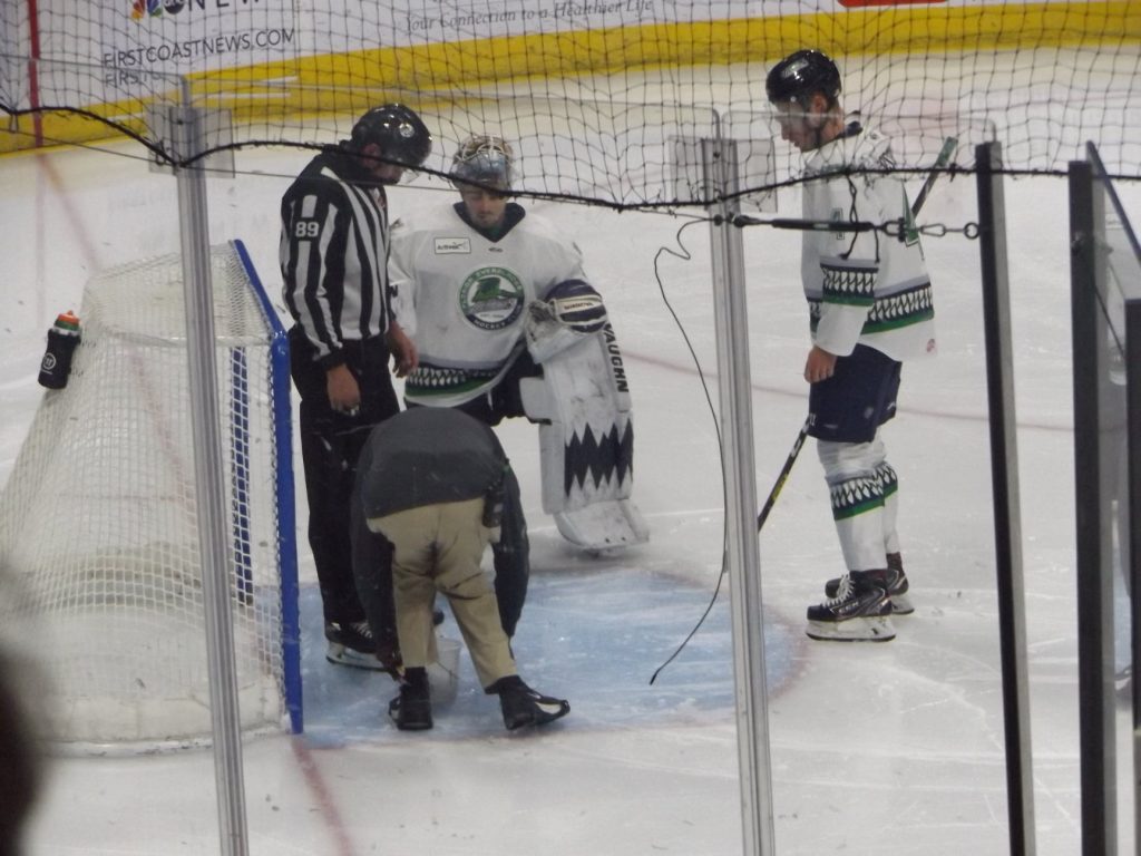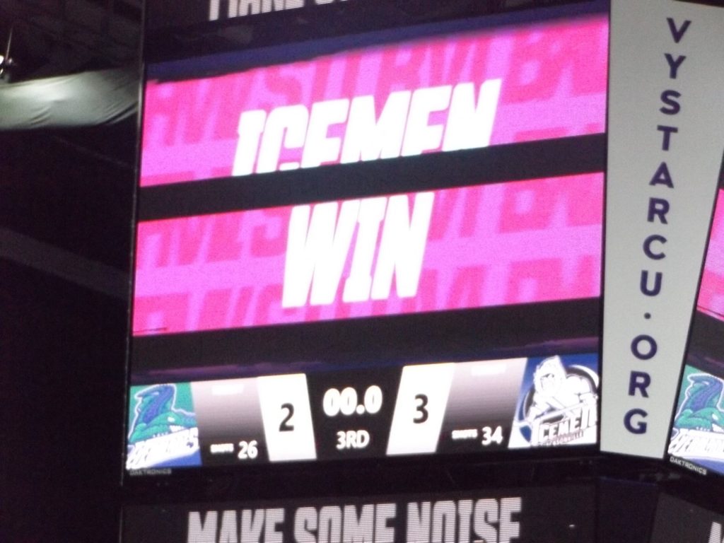 There was only one goal in the middle stanza and it went to the host Icemen. It came at the 7:21 mark when Jake Elmer scored for the second time this season helped by assists from Jason Binkley and Erik Bradford. The only other excitement in the frame came three minutes later when Florida’s Marcus Vela and Jacksonville’s Pascal Aquin dropped their gloves and engaged in a spirited fight.