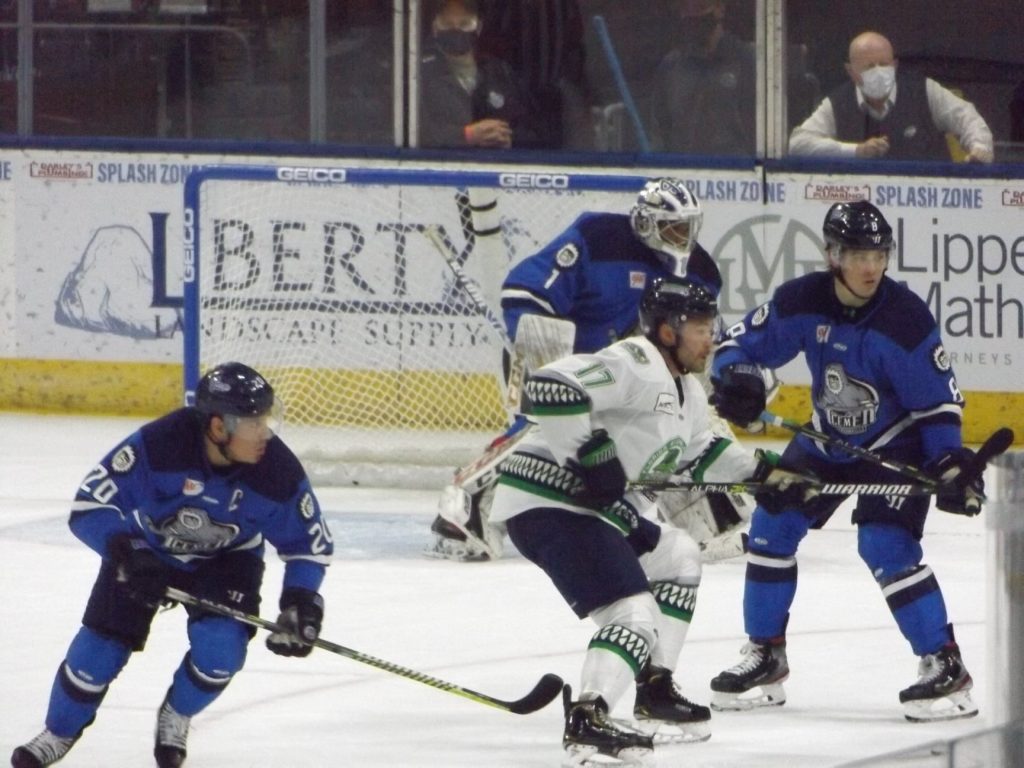JACKSONVILLE, FLA – On Friday, April 9th, the Jakcsonville Icemen hosted the Florida Everblades in the first of a three-game set between two of the three Florida-based ECHL teams. Led by a three point night from Ara Nazarian and 23 saves by goalie Charles Williams, the host Icemen parlayed a goal in each period into a 3-2 win in front of a COVID-restricted crowd of 2,954 at the Vystar Veterans Memorial Arena.