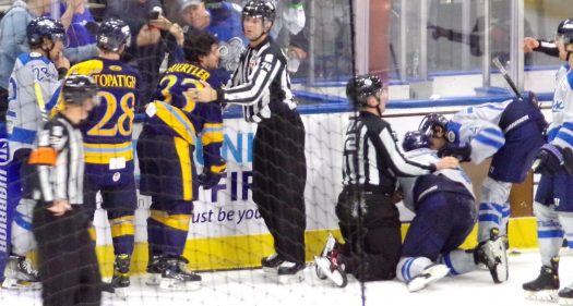 Luke Lynch scored on the powerplay 3:13 into the game and Ara Nazarian added the game-winner at 19:06 of the second period. Francois Brassard stopped 27-shots while posting his second post-season win.