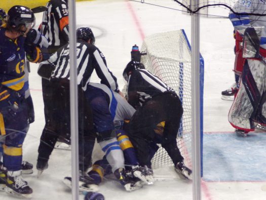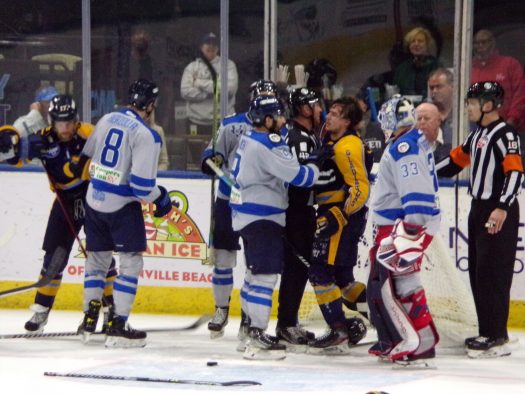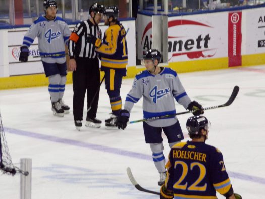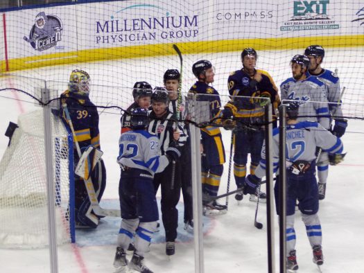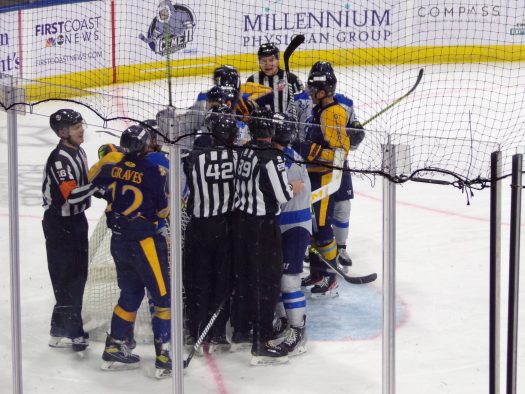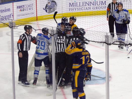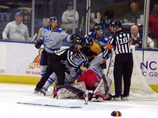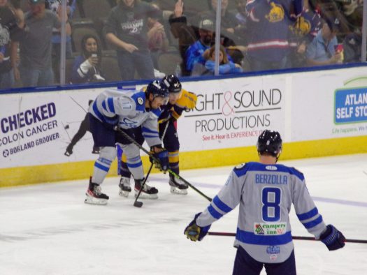 The physicality and post whistle scrums really picked up in the third period as Jacksonville got a powerplay following a scrum late in the period. Atlanta generated several quality scoring opportunities which were thwarted by stellar saves by Francois Brassard. Despite some tense moments later, the Icemen held on for the 3-2 win to take a 1-0 series lead.