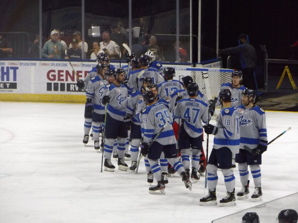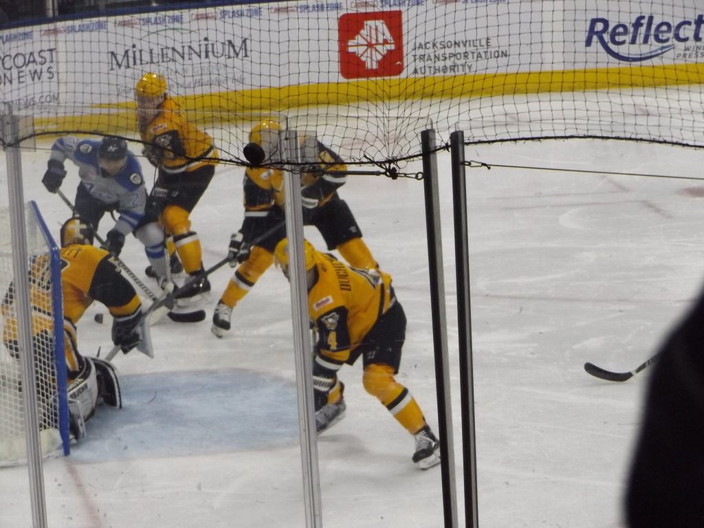 The teams battled back and forth through the third and final stanza but Williams and Starrett (35 saves) held tight to keep it a one-goal game. Finally in the closing seconds, Jacksonville’s Ara Nazarian put the game on ice with an empty net goal for his 18th of the season with 42 ticks remaining.
