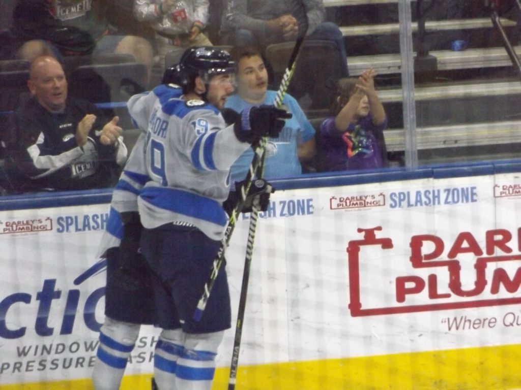 JACKSONVILLE, FLA – On Friday, May 7th, the Jacksonville Icemen hosted the Wheeling Nailers in the first game of a three-game set at the Vystar Veterans Memorial Arena. Thanks to a pair of second period goals by Abbott Girduckis and Wacey Rabbit and 24 saves by goalie Charles Williams, the Icemen came away with a 3-1 victory.
