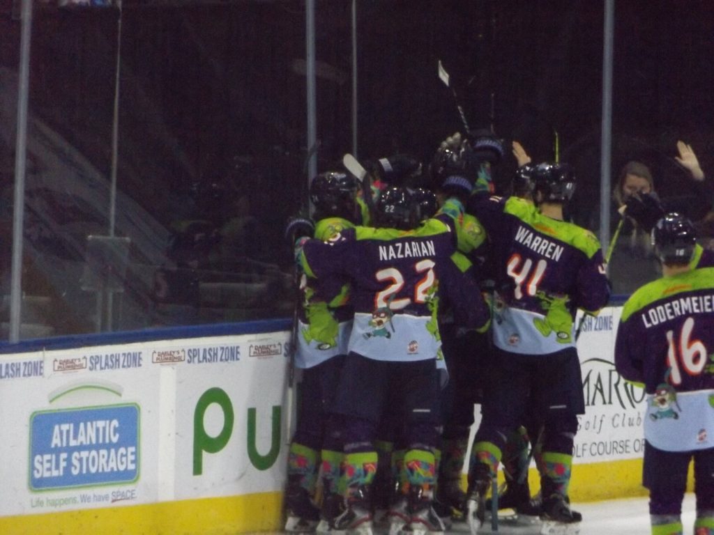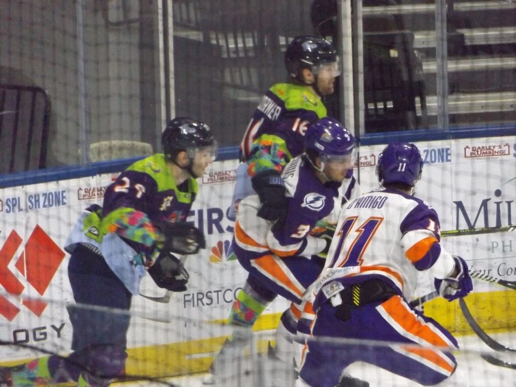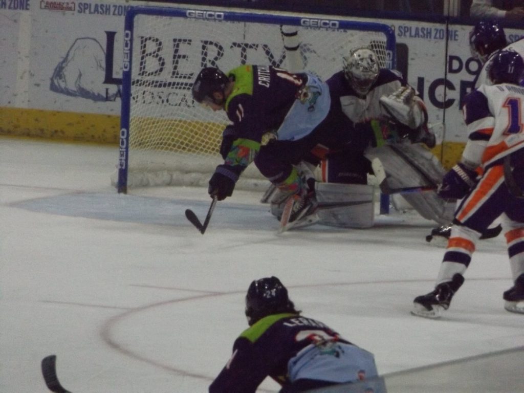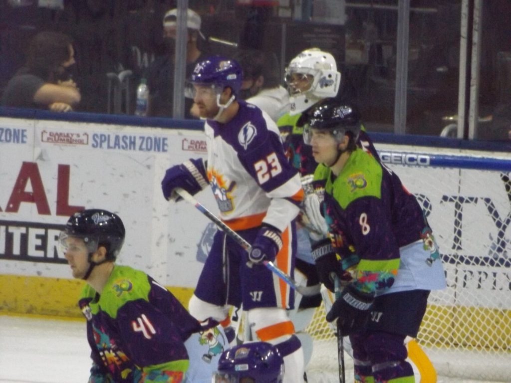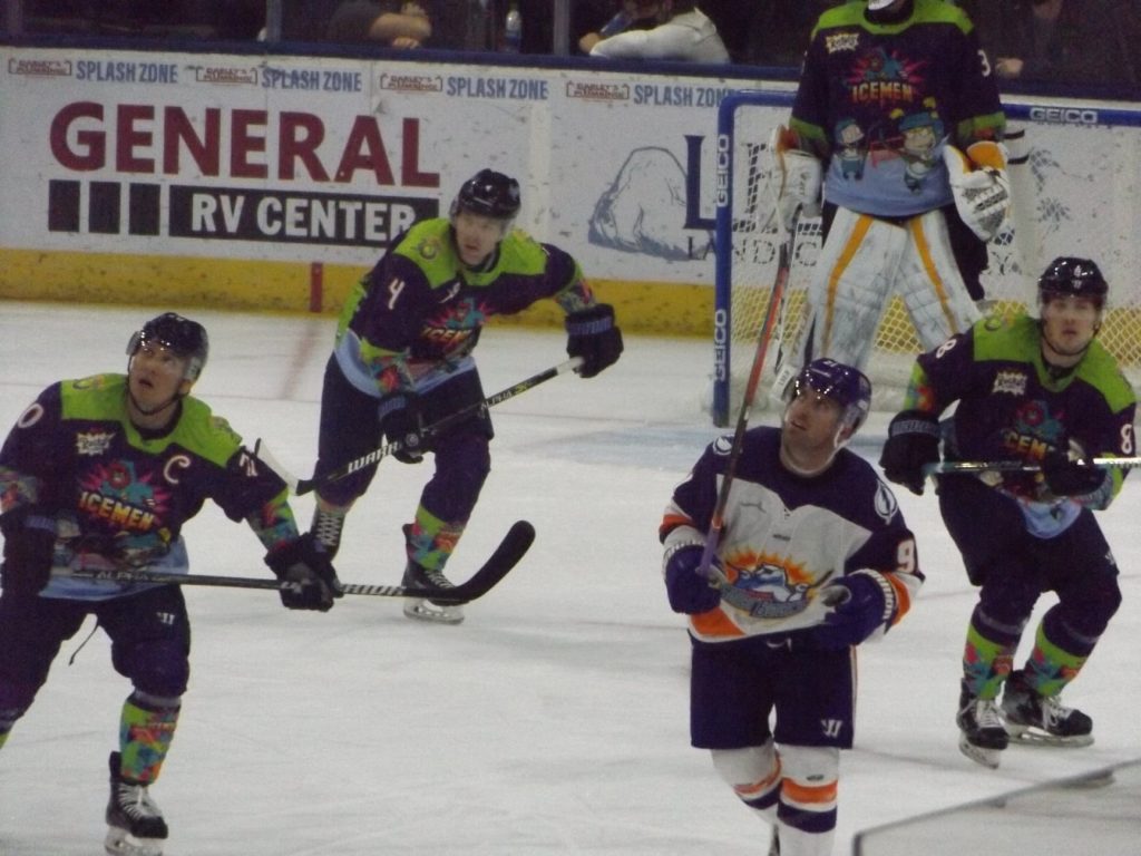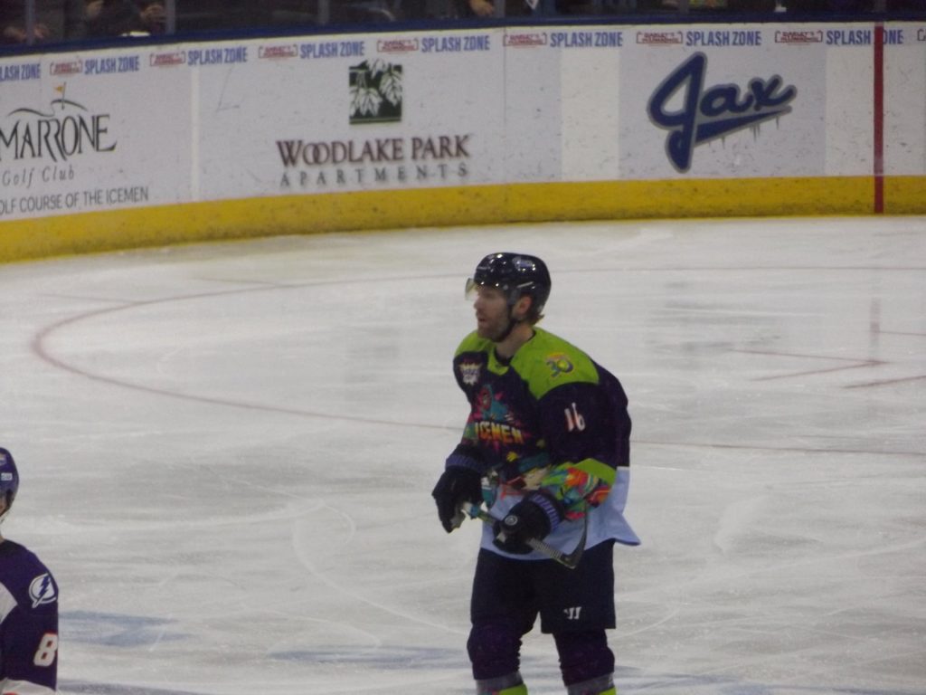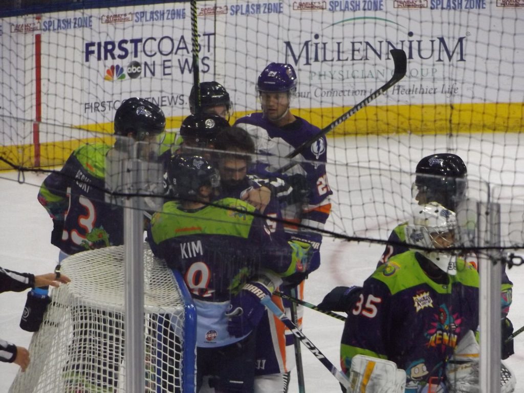 JACKSONVILLE, FLA – Saturday, February 27th was Nickelodeon Night at the Vystar Veterans Memorial Arena with the host Jacksonville Icemen wearing “Rugrats”-themed jerseys on a night where it was all about the kids having fun. By the end of the evening, everyone who was a fan of the team went home happy when Craig Martin scored the winning goal 3:28 into overtime to give the Icemen a 3-2 victory over the Orlando Solar Bears.