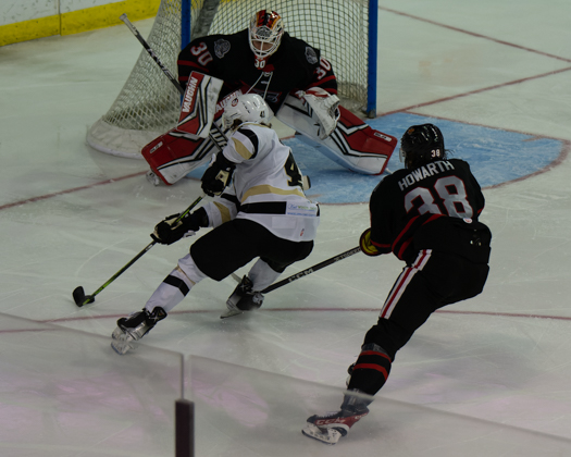 By the halfway point in regulation, there were just seventeen shots on goal between both teams and no scoring. It was Cam Hillis who scored first at 12:51 to put the Fuel up 1-0.