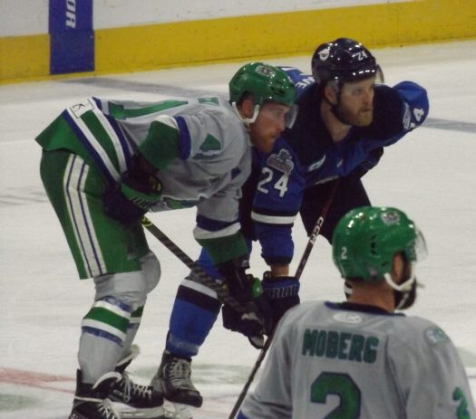 In the third period, Irvine struck again to give the Everblades a 3-1 lead at 11:19, converting a pass from Levko Koper just as he left the penalty box and got behind the Jacksonville defense to knock home the insurance goal. Irvine’s fourth goal of the series led all Florida players. Jacksonville’s Derek Lodermeier tipped in the puck with the Icemen on a six-on-five advantage at 18:32 to pull the home team within one, but empty-net goals by Levko Koper and Irvine in the final minute closed out the scoring.