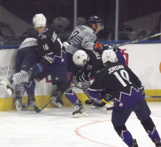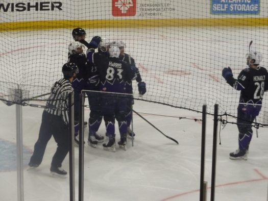 Jacksonville jumped out to a 5-0 lead heading into the second intermission before Greenville scored three times in the final period to pull within two goals with just less than two minutes remaining.