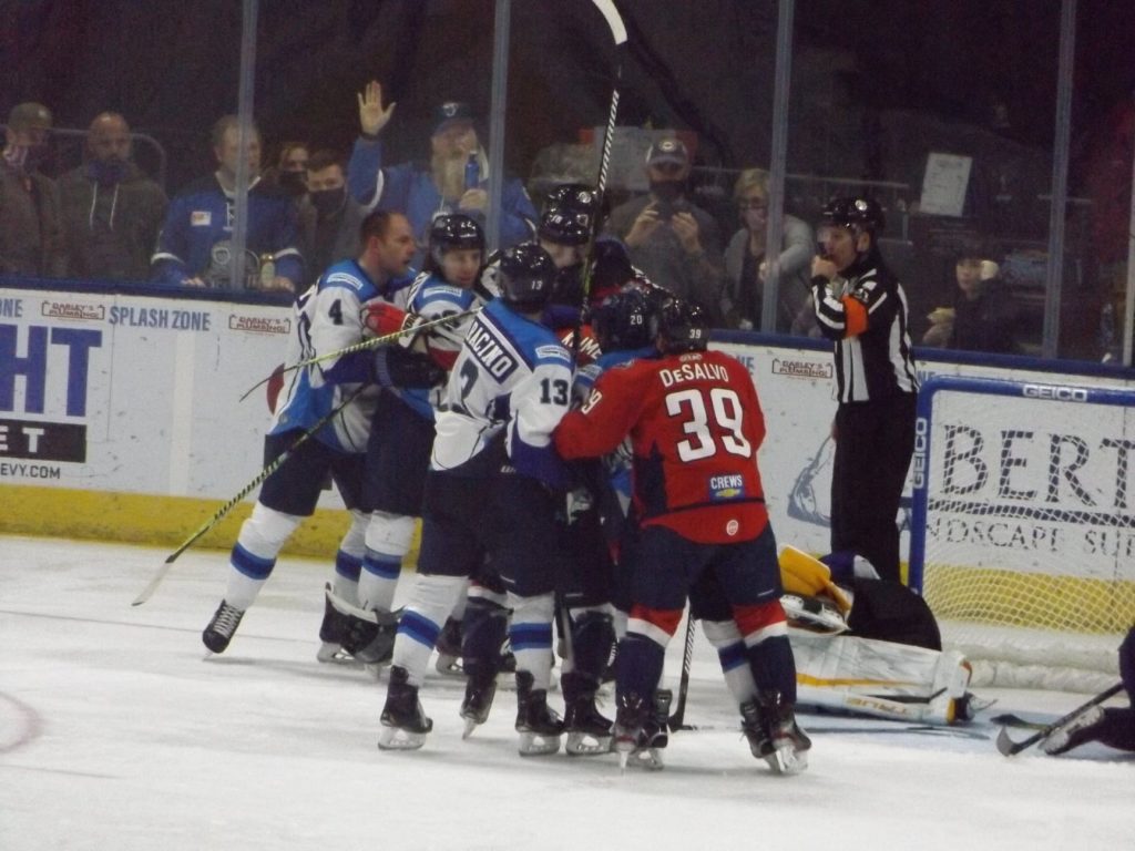 After numerous chances for both teams, Icemen forward Brendan Warren scored off the rebound from a Pascal Aquin shot. Aquin hammered a shot from the wing that was stopped by Kupsky. However, the rebound jumped to the slot and Warren snapped a shot into the net to seal the 4-3 win. With an assist on the play, Aquin finished the night with four points (2 goals, 2 assists).