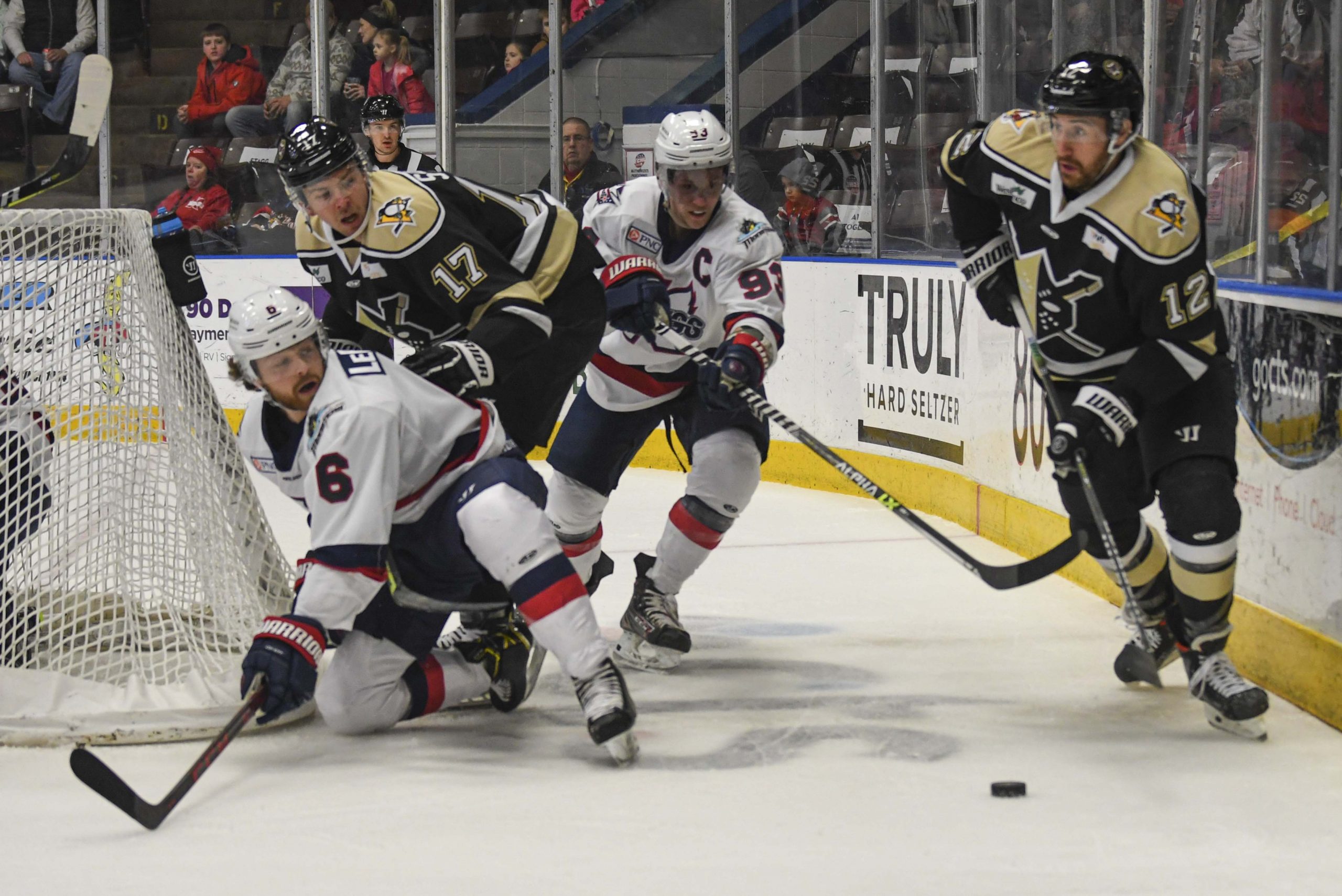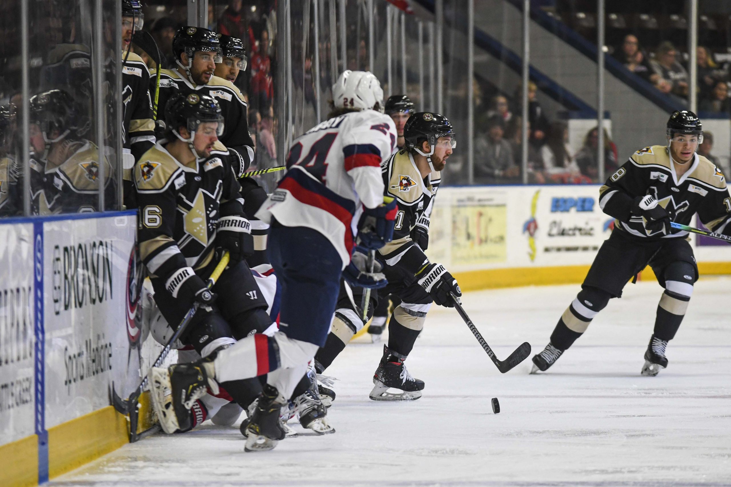 Trevor Gorsuch made multiple outstanding saves (33) to keep the K-Wings within striking distance throughout.