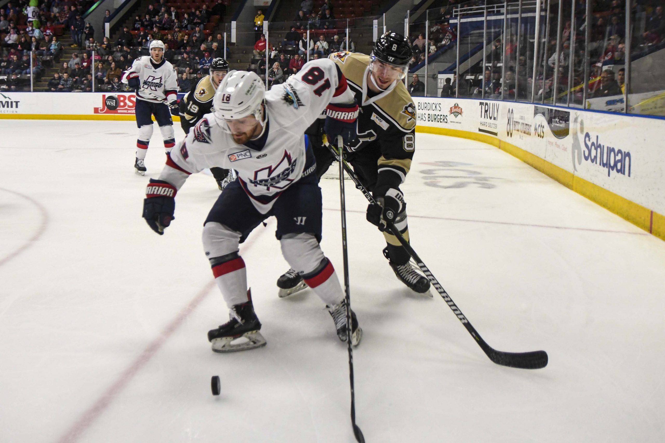 KALAMAZOO, MI – The Wheeling Nailers (23-18-1-0) marched out to a 3-0 lead, never relinquished it and beat the Kalamazoo Wings (23-18-0-0) on Wednesday at Wings Event Center, 4-1.