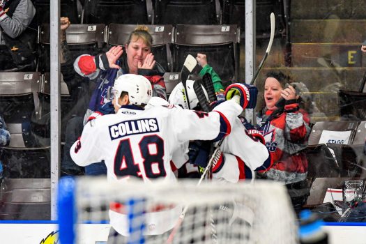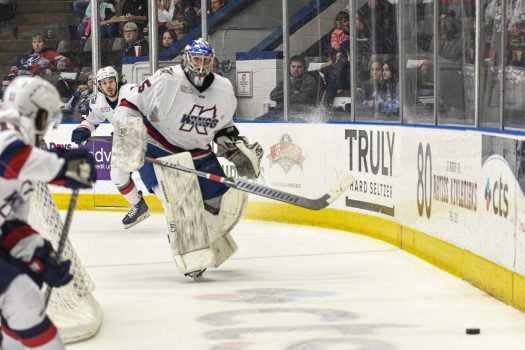 On the game-winner, while skating 3 aside, Erik Bradford (25) found Olivier LeBlanc (4) at the top of the offensive zone and skated to the bench for a change. Iacopelli replaced Bradford on the ice, accepted a drop pass from LeBlanc and sniped his second goal of the game into the back of the net from the right circle.
