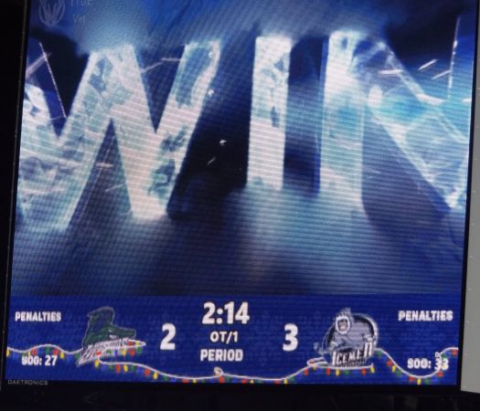 In the extra session, Liam Coughlin circled the Florida net and swung a pass in front to Davis Koch who buried the puck shortside for the game-winner to give the Icemen the 3-2 win.