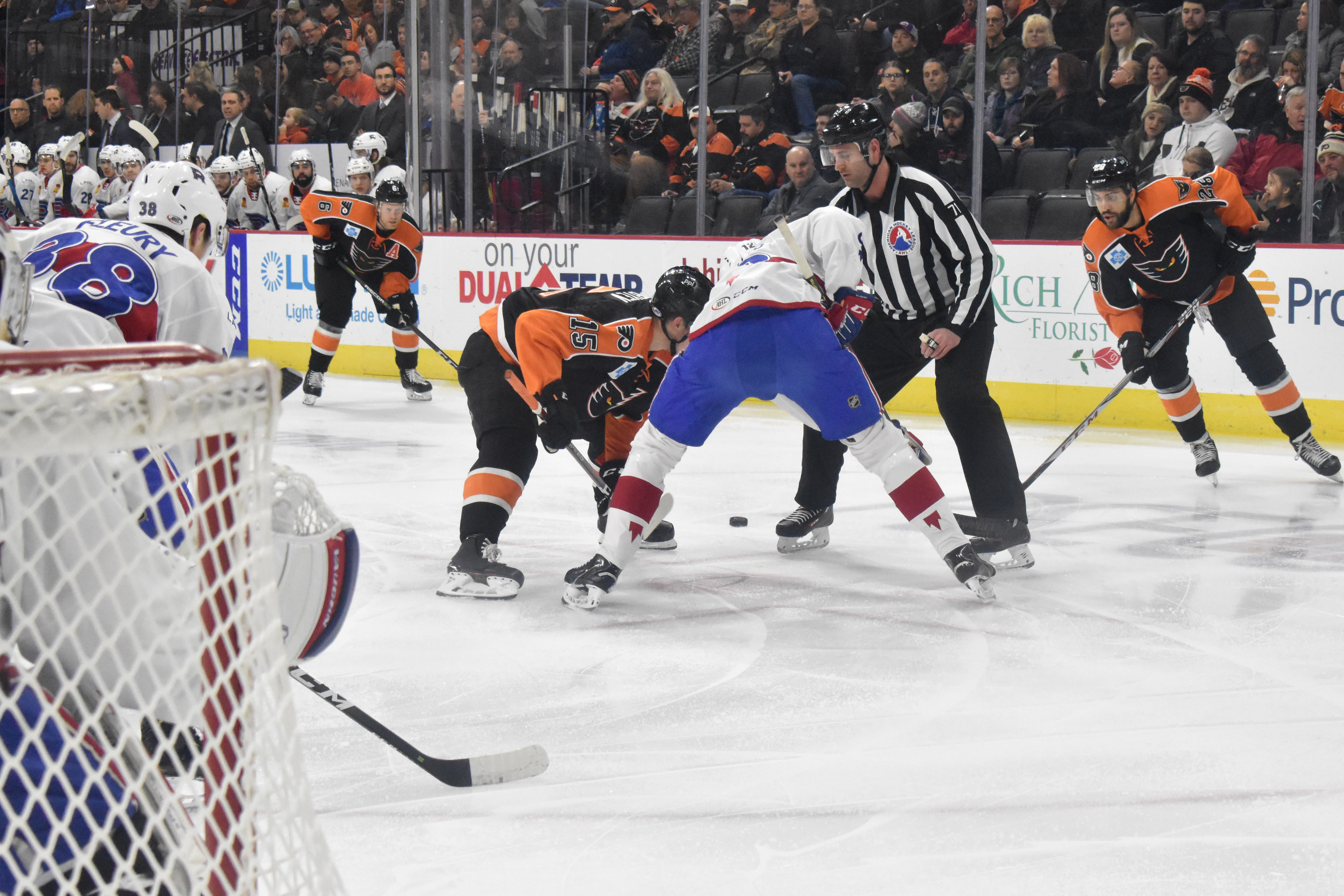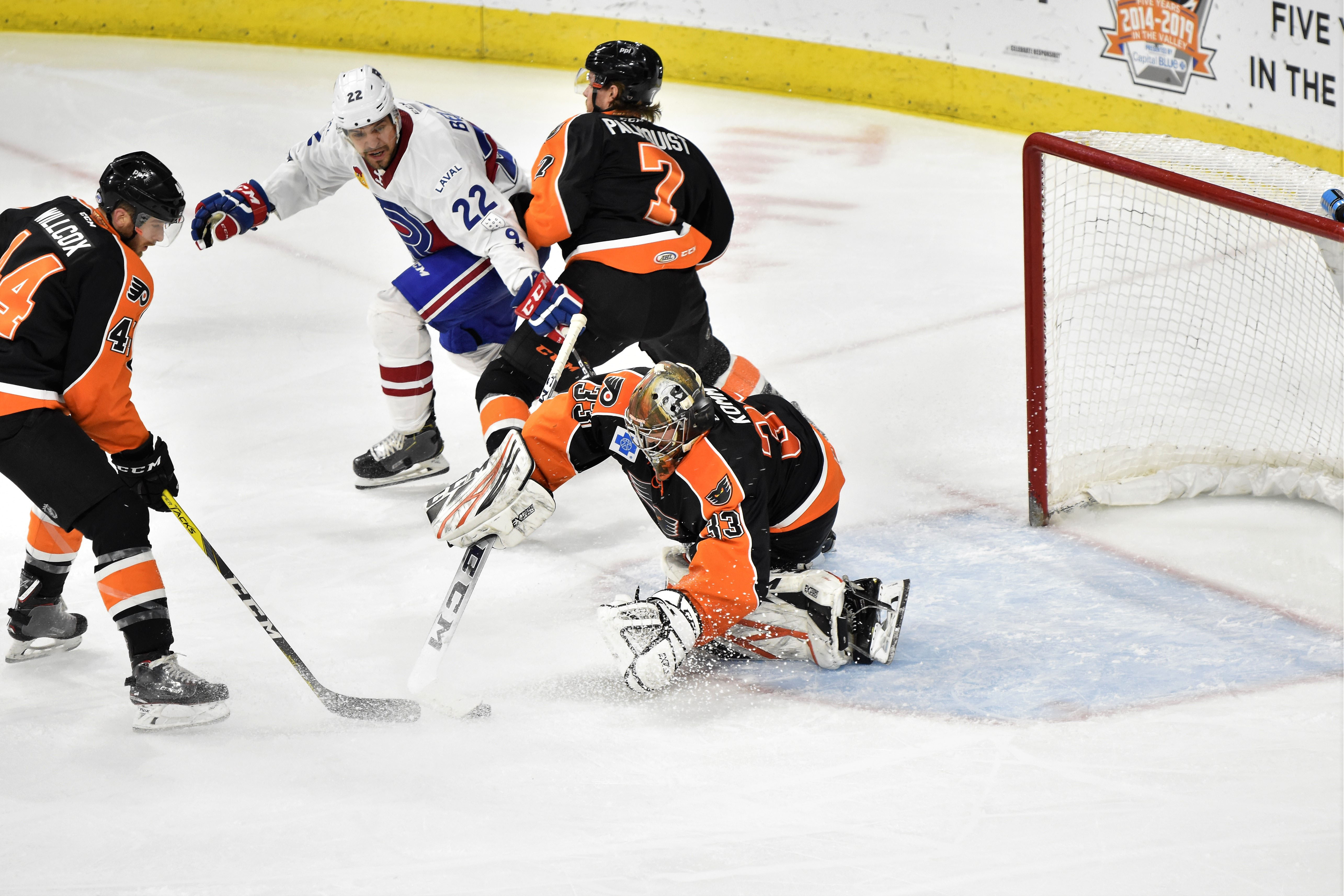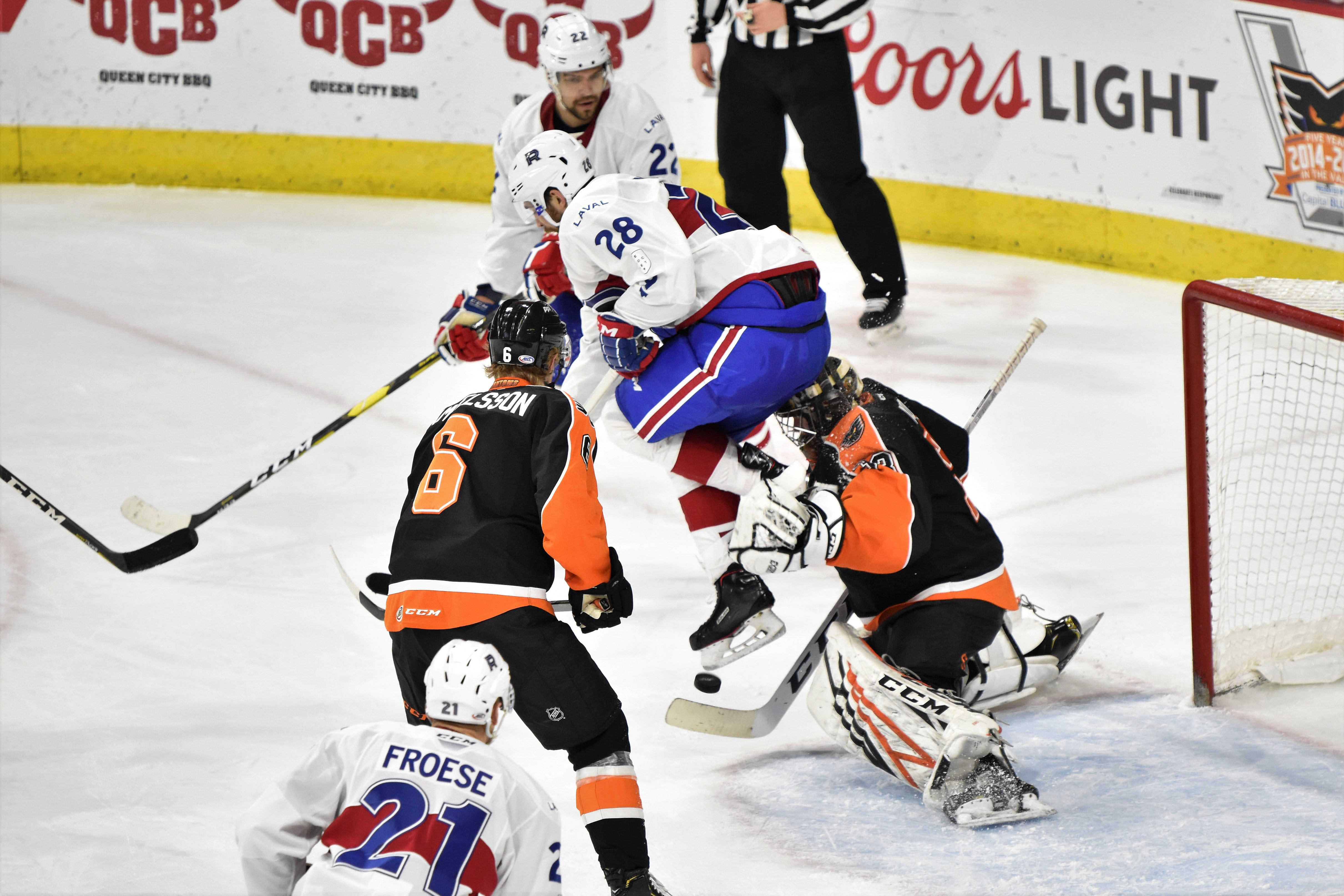 Laval got a late goal on a power play with a little over four minutes to play but it wasn’t enough as the Phantoms won it 3-2 in the home game before the All-Star break. Branden Komm, who was just called up this afternoon, made 34 saves and earned the first AHL win of his career.
