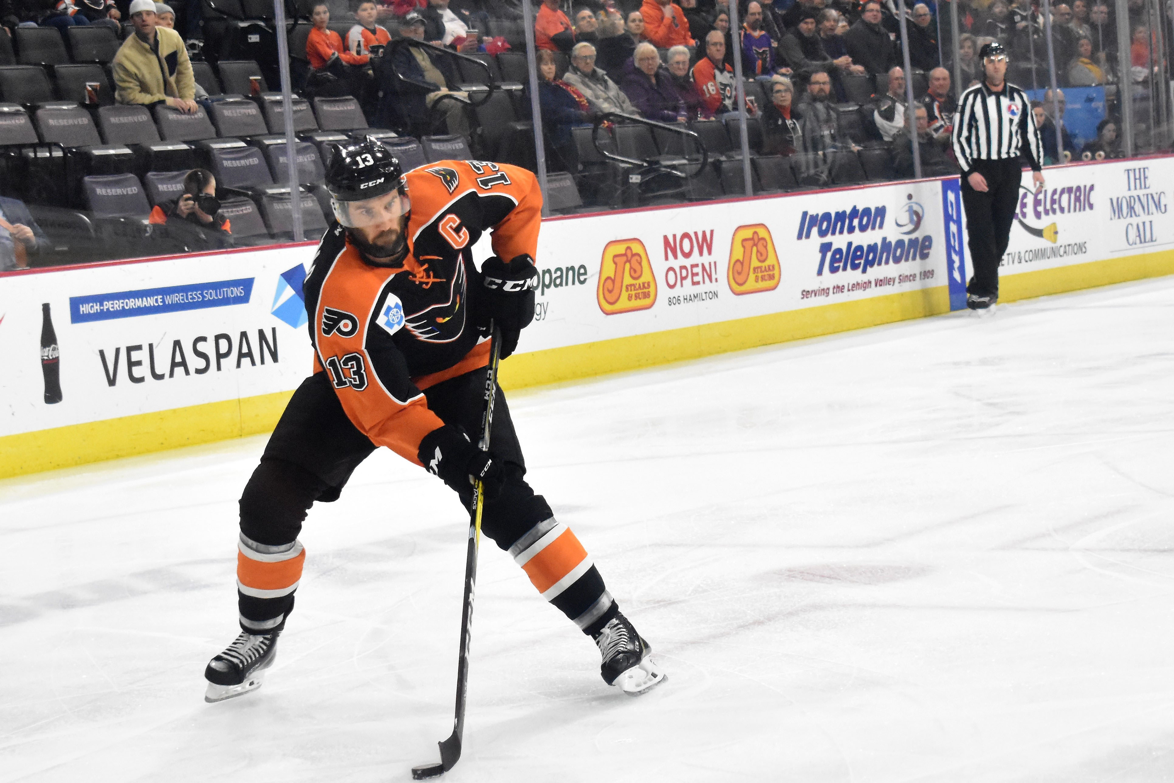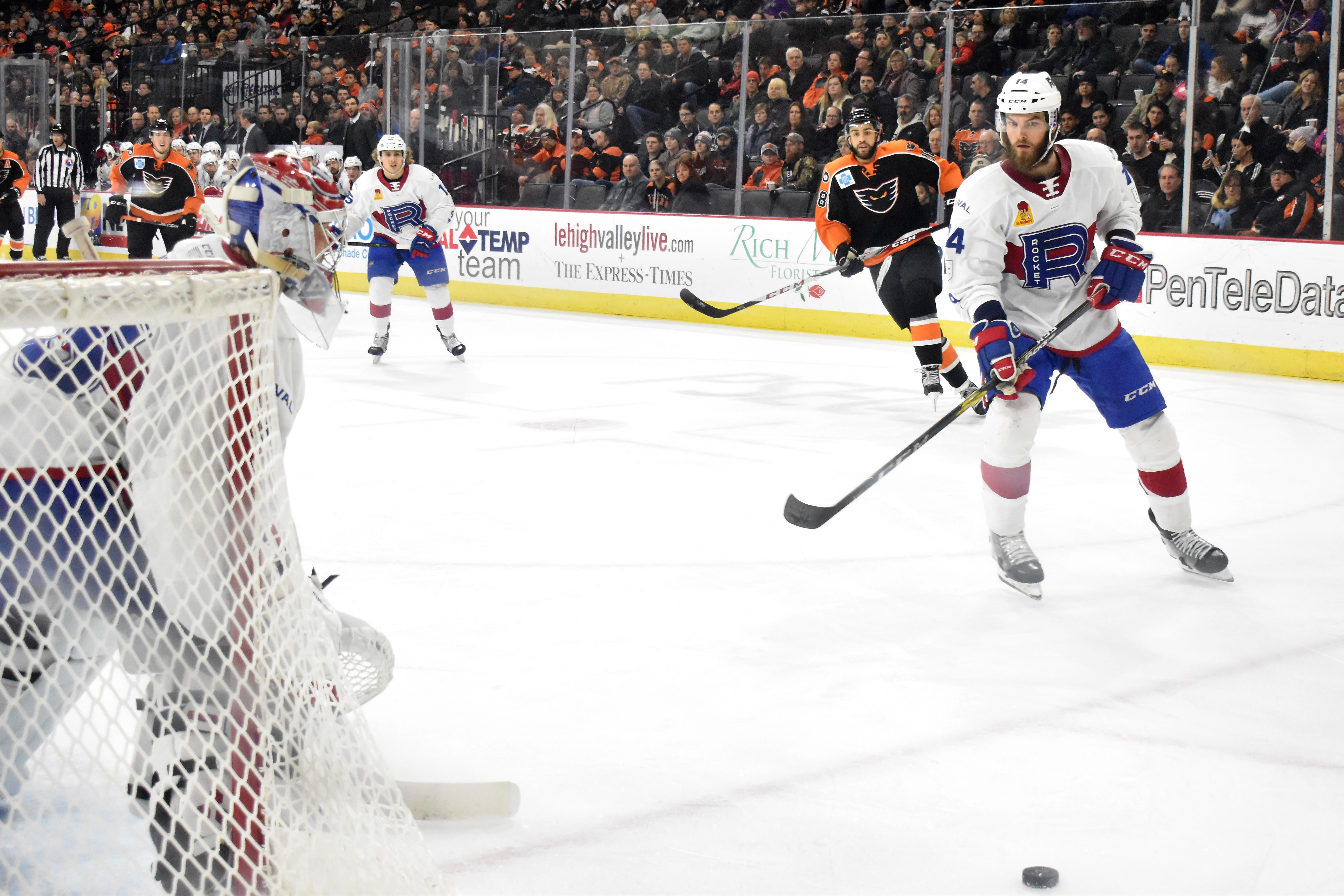 The birthday boy got things started for the Phantoms just 3:27 into this one. Celebrating his 22nd birthday, Phil Myers threw the first shot of the game on net from just in front of the blue line and the puck found its way to the back of the net for his eight goal of the season.