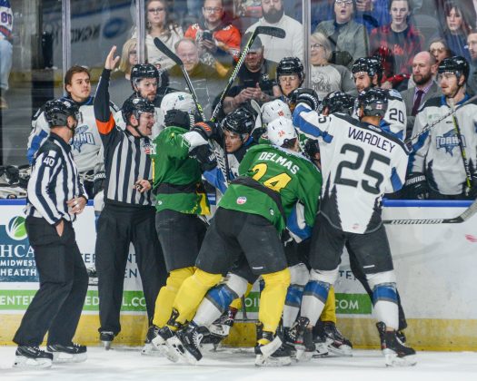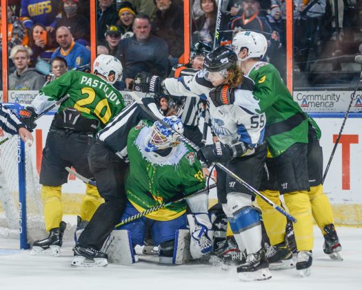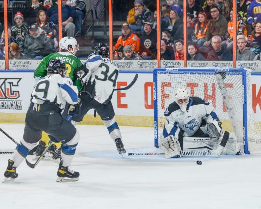Though there wasn’t scoring in the first period, the Steelheads struck iron in the second period with a pair of goals starting with forward Luc Brown (2:01 2nd) on the second shift of the frame to take the 1-0 lead. Forward Matt Tugnutt (8:49 2nd; 5:55 3rd) scored not only his first professional goal off a Mavericks skate but also added his second pro goal early in the third period off the crossbar to stretch the advantage to 3-0. Brown (PP, 7:31 3rd) extended the team’s scoring streak on the power pay to six games with his second of the night, and forward Zack Andrusiak (18:21 3rd) added one of his own to cap off the scoring and the 5-0 win. Jake Kupsky halted all 27 shots in the shutout victory.