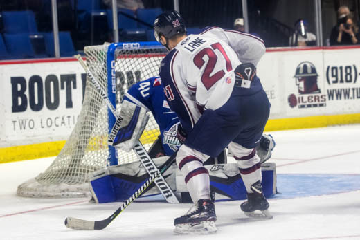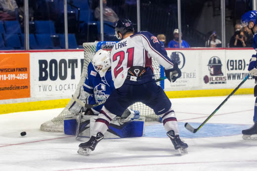 Brent Gates scored the first goal of the game in the final minute of the second period. Justin Taylor slung the puck from the left-wing wall, finding Gates in the crease, who tipped the puck past Evan Weninger, beating him on the Oilers’ 34th shot of the game. Tulsa outshot Wichita 23-4 in the middle period.