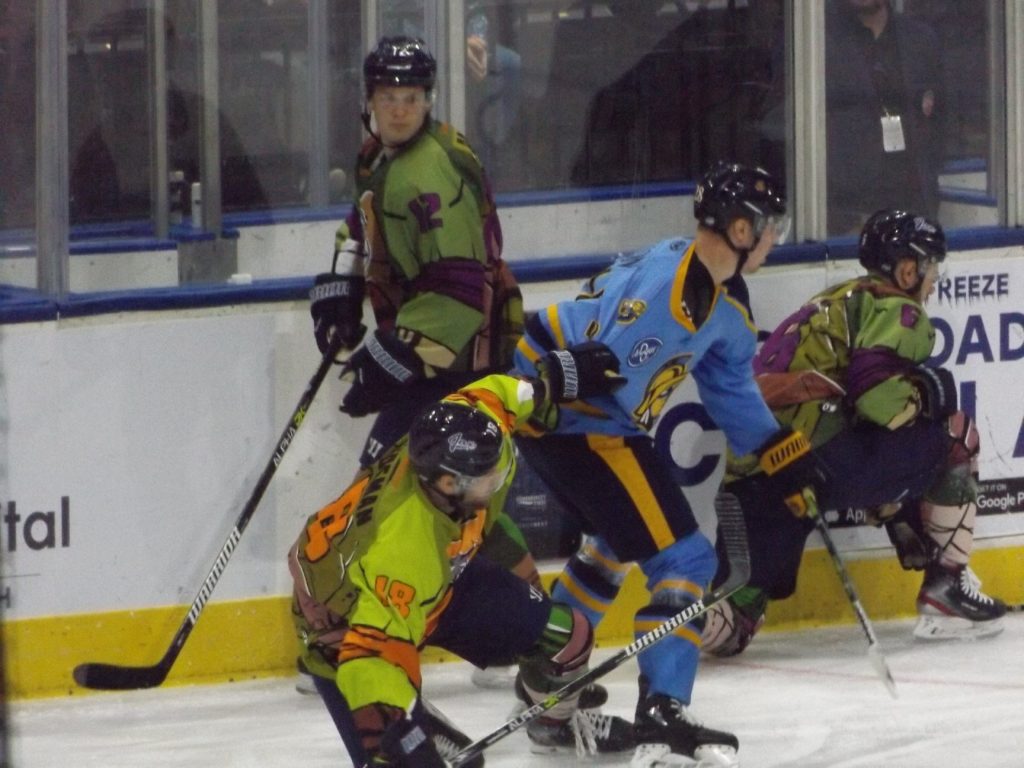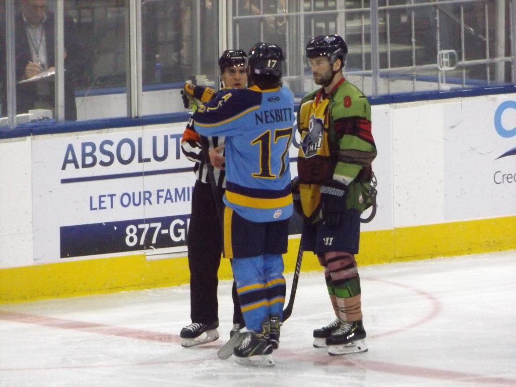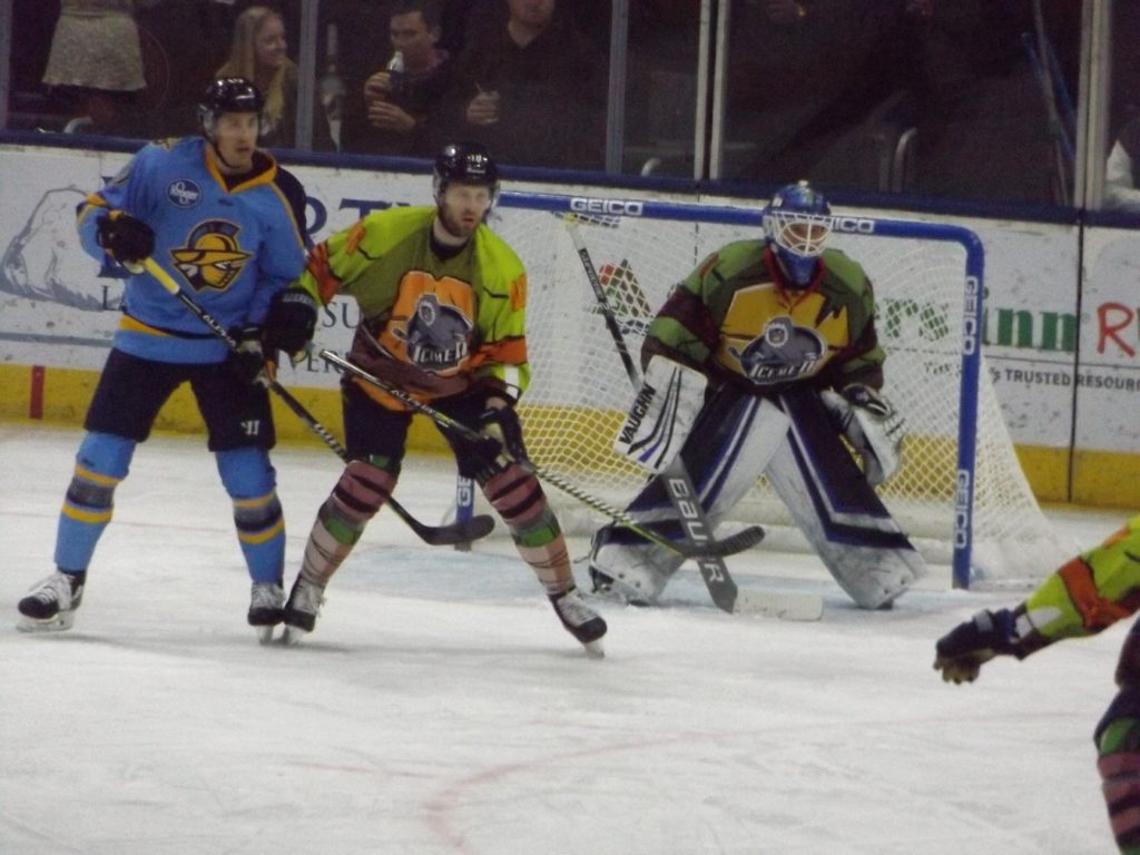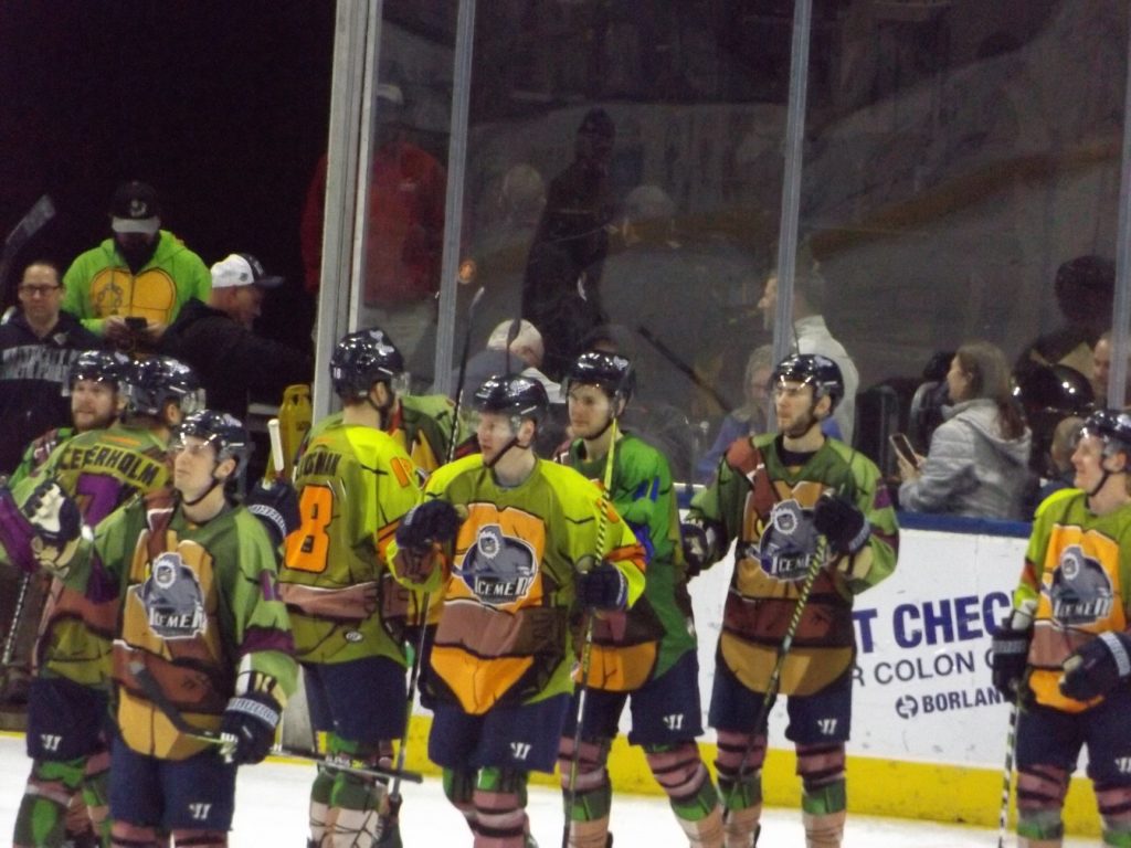 JACKSONVILLE, FLA – On Saturday,March 7th, the Jacksonville Icemen hosted the Atlanta Gladiators on Teenage Mutant Ninja Turtles night at the Vystar Veterans Memorial Arena. After taking down the Florida Everblades the night before in overtime, the Icemen again had to work a little bit extra but they summoned all their superpowers at the right time as Chase Lang’s tally early in the extra frame was the difference as they prevailed 3-2.
