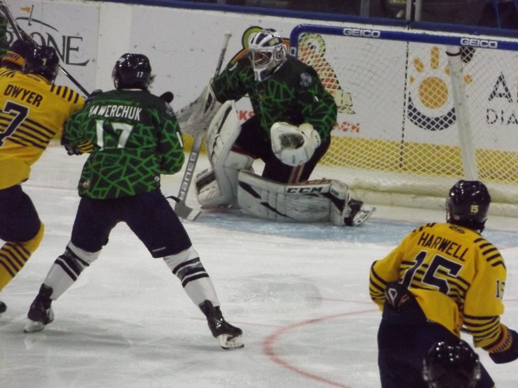 The Lizard Kings got off to a great start in the first period as defenseman Zach Berzolla made a move around an Admirals defender and made a cross crease pass to forward Sides and he buried it to take an early lead.