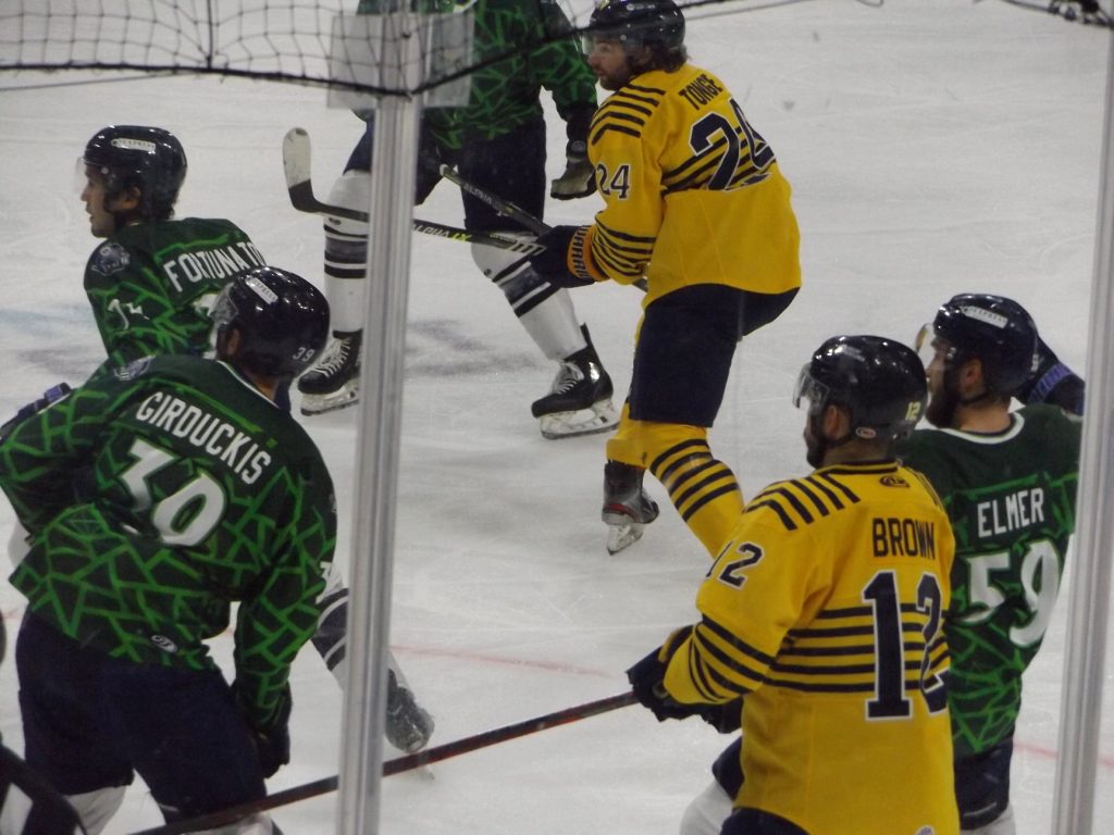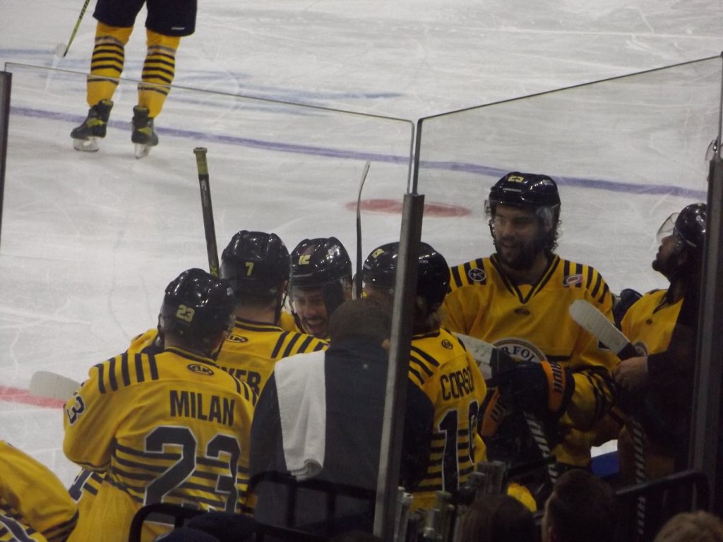 Later in the period, the Admirals would get their first goal of the game on a breakaway by Alex Tonge to tie the game at one goal apiece.