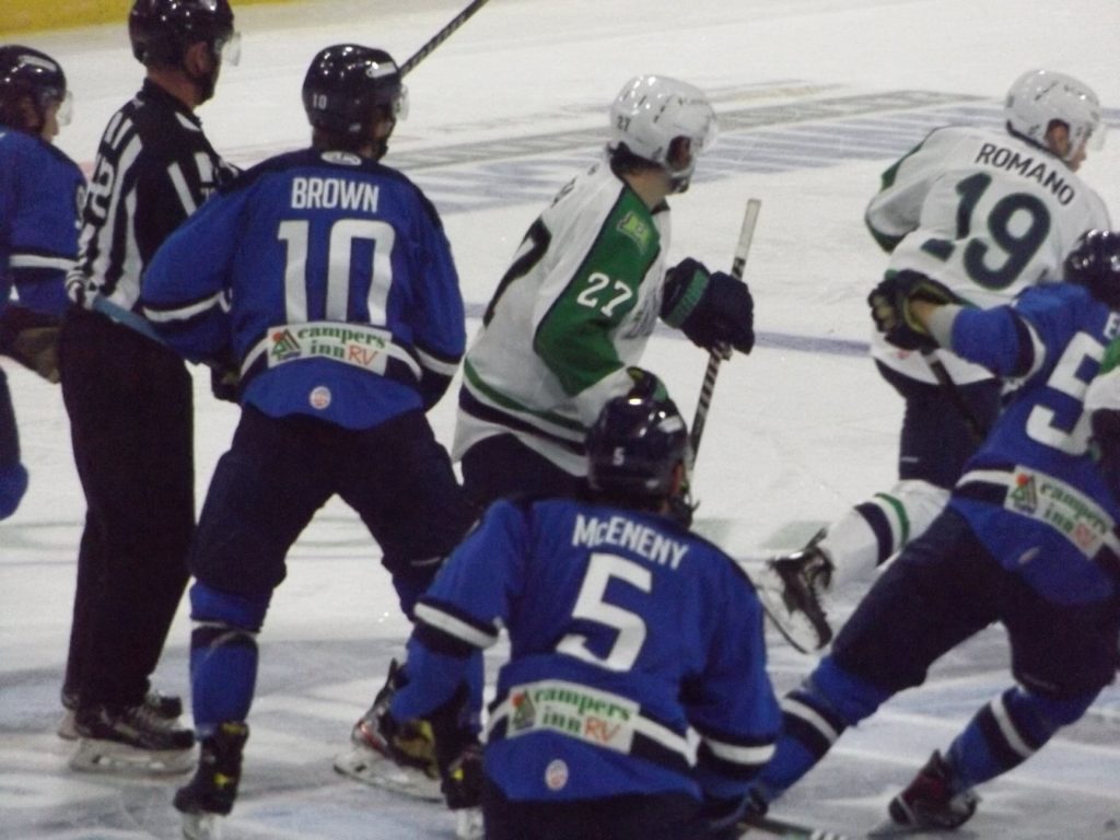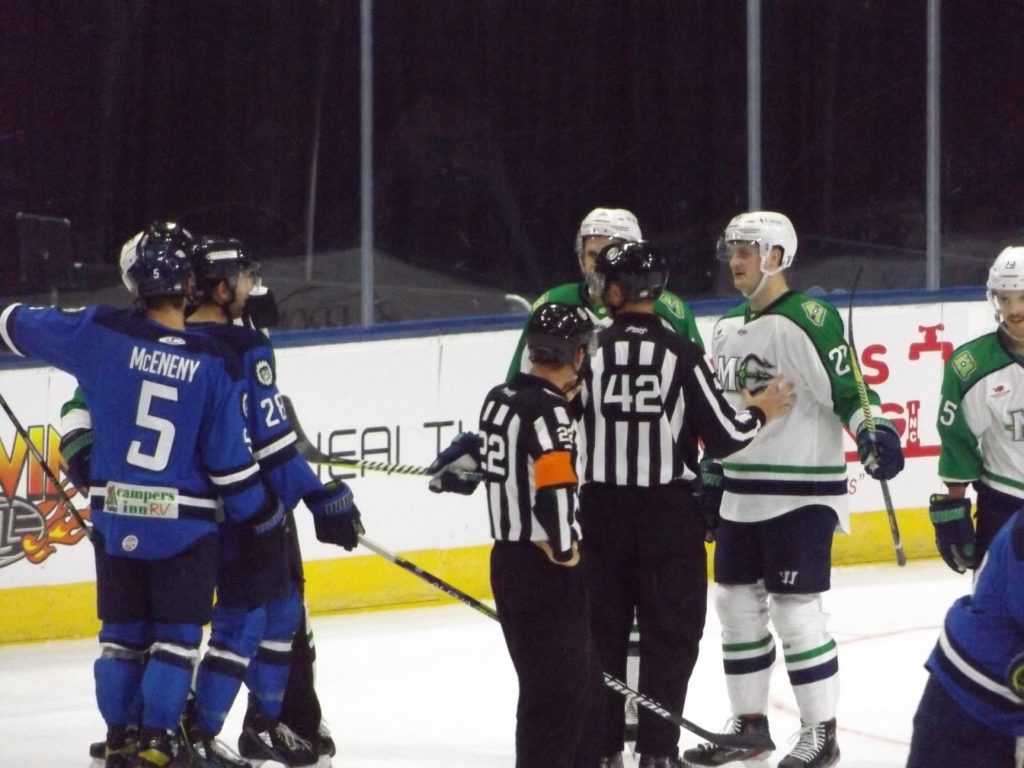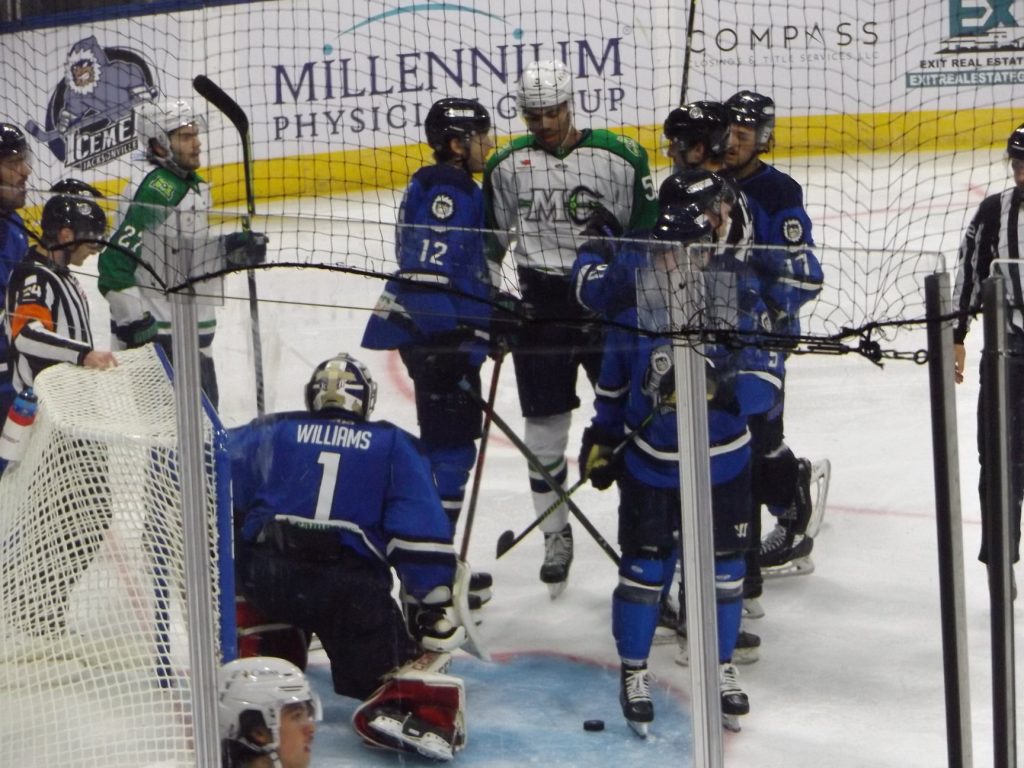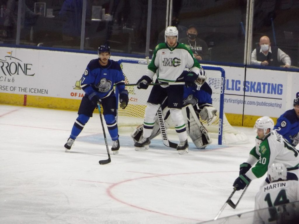 The host Icemen started the scoring 6:07 into the first period when one-time Mariner Jeff Taylor got all of a slap shot from the point that beat Maine goalie Zach Bouthillier. James Sanchez and Austin McEneny drew the assists on the score.
