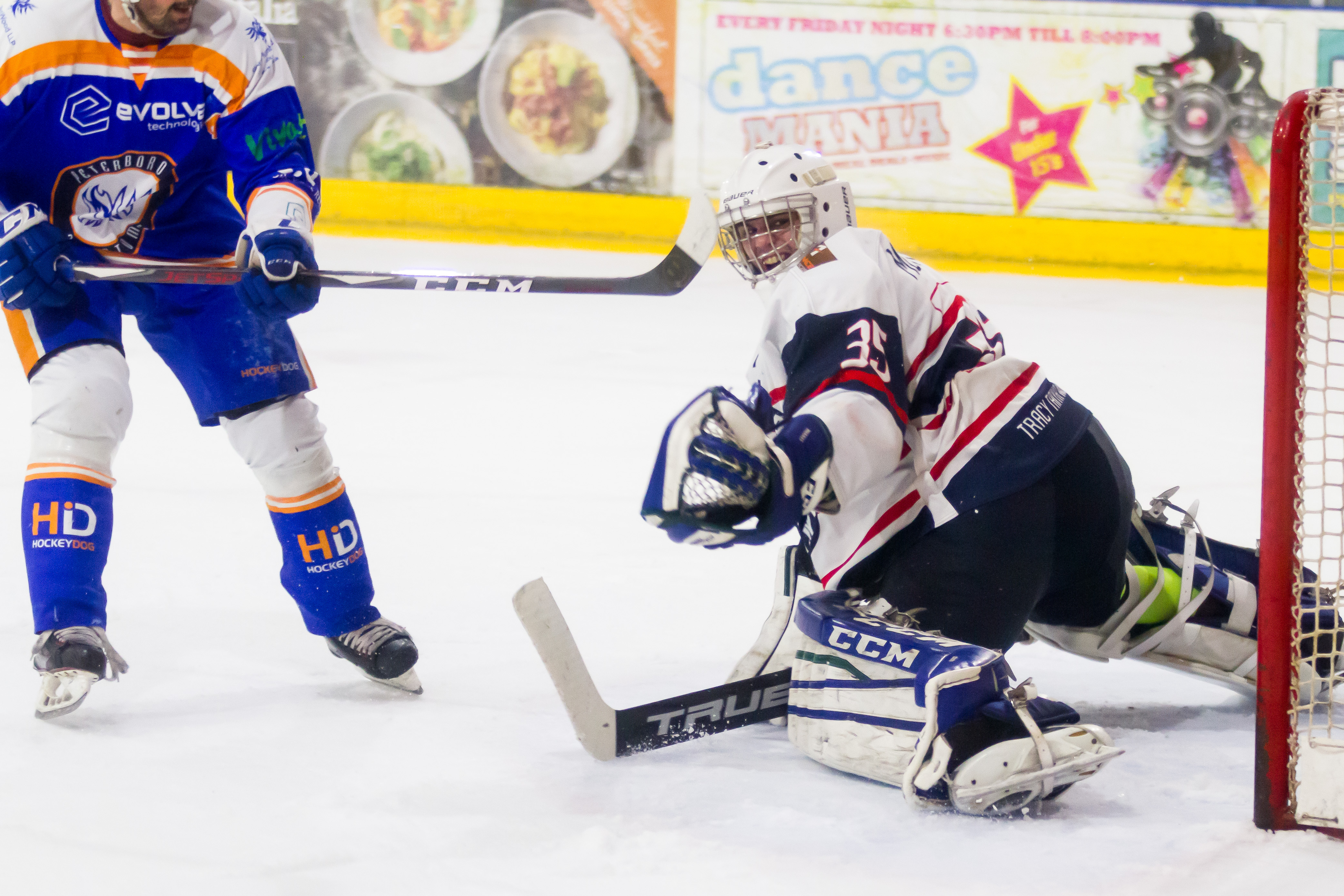 The second period began, and the two teams battled for dominance. Oskars Ancitis was sent to the box for two minutes for high sticks. Soon, Strawson was to join his fellow teammate in the box as he was called for a two-minute hooking penalty. Goal three then came for Thunder on the p0owerplay courtesy of Rio Grinnell-Parke – the Milton Keynes forward turning in a rebound from the edge of the crease at 30:37. The goal angered the Dynamos netminder and he slammed his stick into the boards in objection.