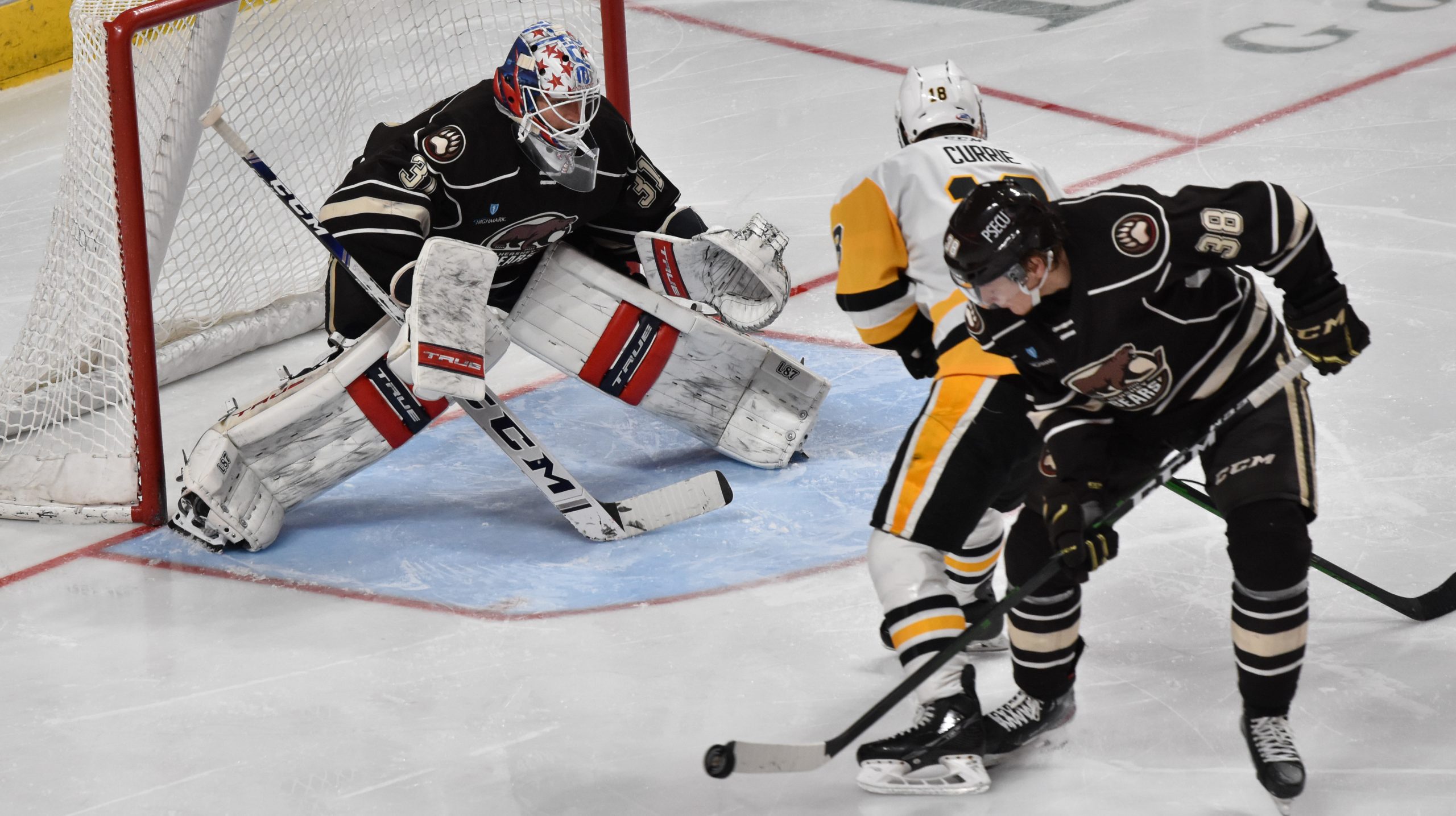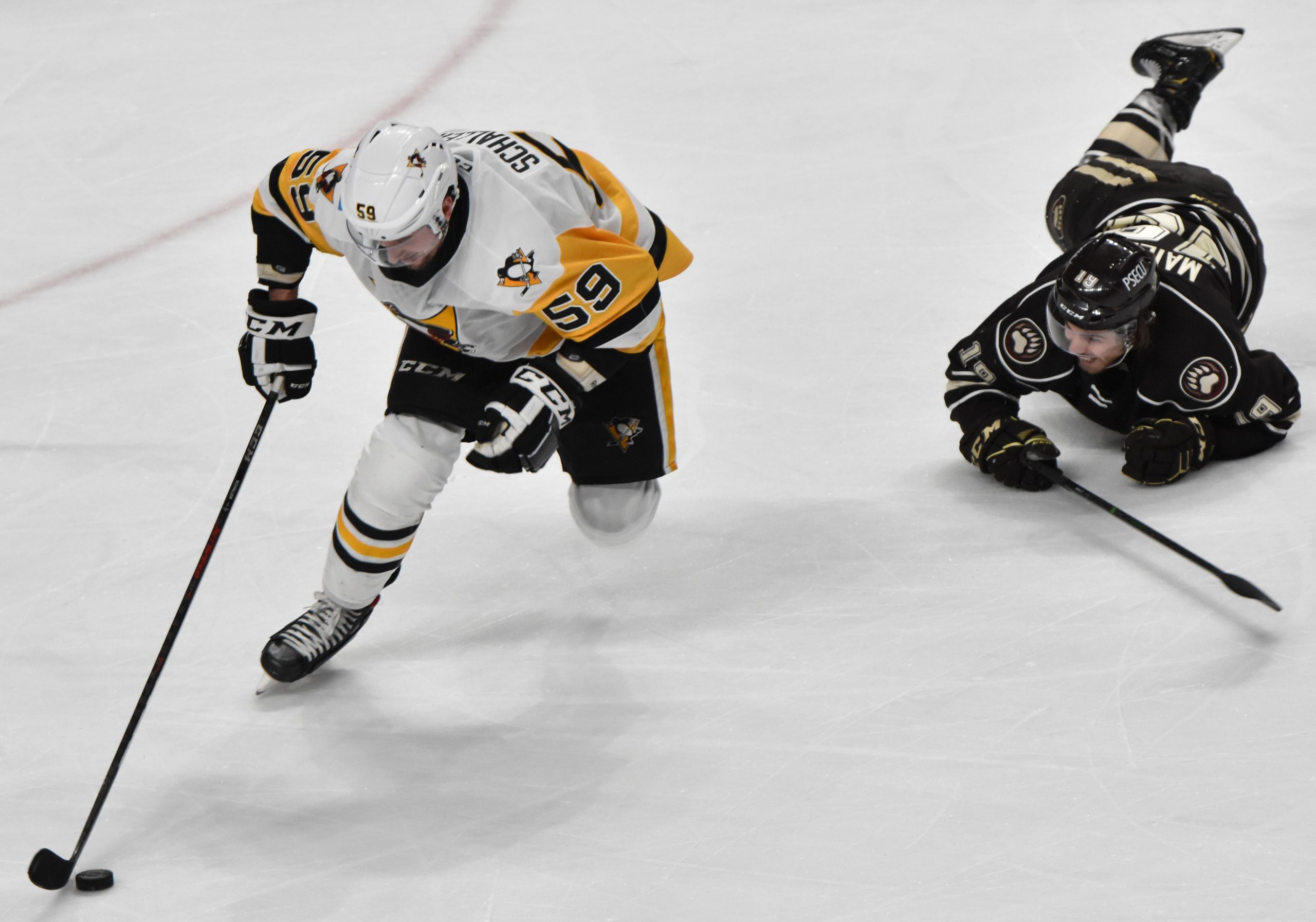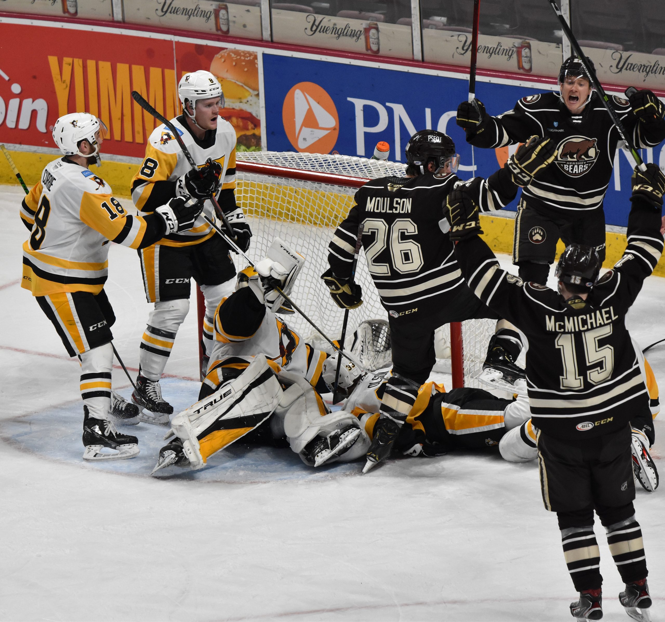 Shane Gersich sealed the win for Hershey, adding an empty net goal at 19:53. Pheonix Copley earned the win in goal for the Bears, stopping 26 shots. Hershey outshot the Penguins 30-27, and the Bears went 1-for-3 on the power play while the Penguins were 0-for-3.