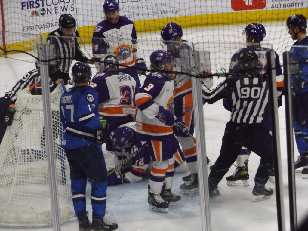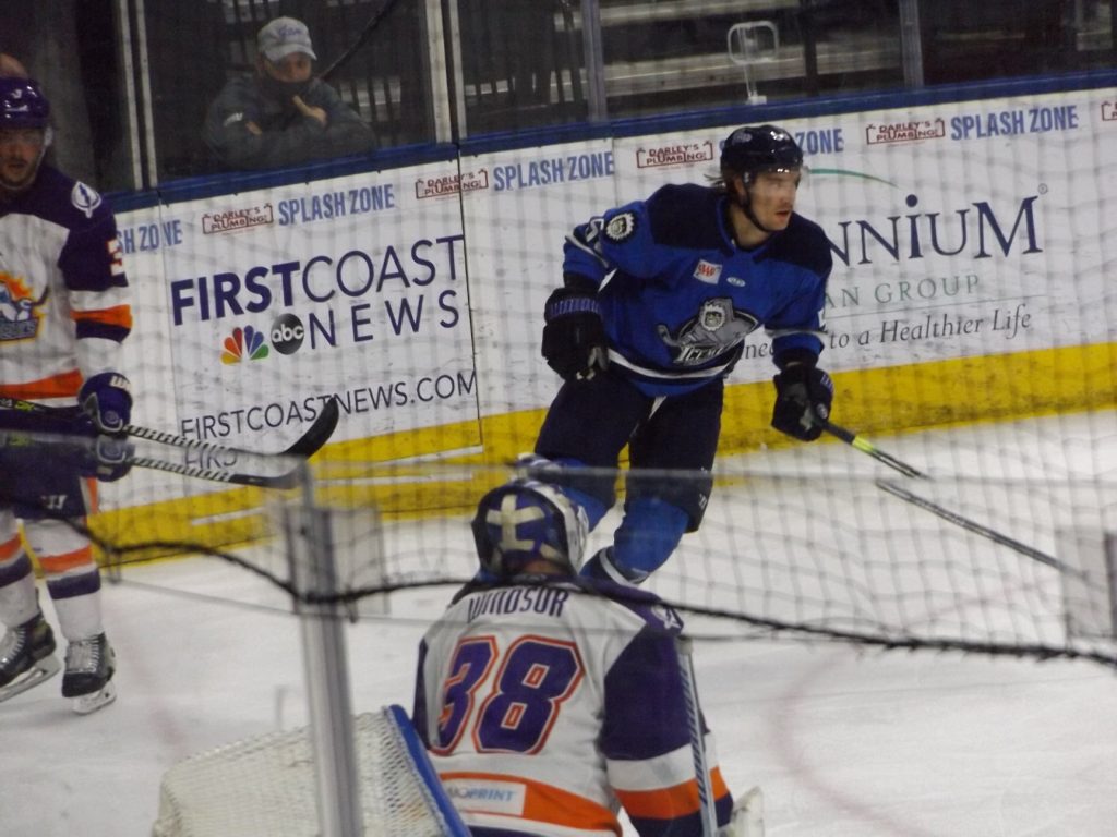 The third and final period belonged to the Icemen. The eventual goal came 1:07 into the frame and a couple of seconds after Jacksonville finished killing off a carryover penalty from the previous period. Ryker Killins, who had been in the penalty box, stepped back onto the ice, took a stretch pass and set off on a breakaway. He beat Orlando goalie Clint Windsor, who finished the game with 29 saves, for his 6th goal of the season.