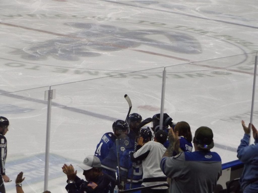 Jacksonville retook the lead at the 7:04 mark when Girduckis scored a rebound goal after a shot by Szmatula for his 11th to make it 3-2. Fifty-five ticks later at 7:59, Orlando’s Chris LeBlanc went top corner with a shot for his 13th to again even the scoreboard, this time at 3-3.